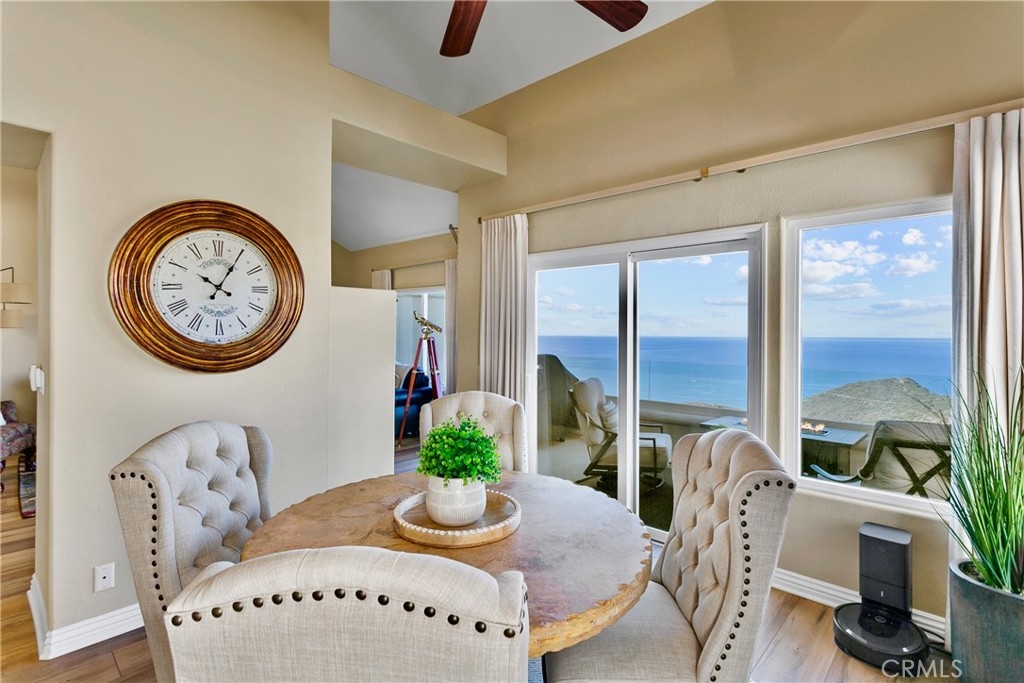 Located high atop the bluff, in the resort-like community of Laguna Sur, this magnificent end-unit enjoys unobstructed, sit-down views of the ocean, coastline and Catalina Island. Meticulously upgraded throughout, this immaculate home is sure to impress even the most discerning buyer. The spacious and open floorplan features vaulted ceilings, beautiful hardwood floors, refinished cabinets, new granite countertops in the kitchen, and new paint inside and out. Designer touches, too numerous to mention, include a custom built-in bar in the kitchen, a coffee bar in the owner’s suite, new window coverings, drapes, fixtures, ceiling fans and stairway railings. Two oversize decks, one on the main level and the other off of the owner’s suite, provide the perfect backdrop to this private hilltop oasis and are the perfect place to enjoy the breathtaking views and spectacular sunsets. Community amenities include two pools, spas and a lighted tennis and pickle ball court. Enjoy coastal living at it's finest in this prime location just up the hill from Some of Southern California’s finest beaches and the world-renowned Waldorf-Astoria, Ritz-Carlton and Montage resorts; Minutes from the charm of downtown Laguna Beach with it’s world class dining and art galleries and the newly renovated ‘Lantern District’ in Dana Point. Sea View and Badlands parks, just outside the gates, offer scenic mountaintop trails and spectacular views.