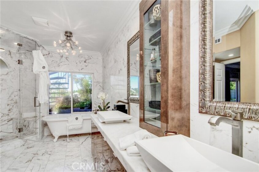 This gorgeous home sits in the exclusive gated enclave of Laguna Sur and features dramatic views of the mountains, city lights, ocean and coastline. The original floorplan has been completely redesigned and extensively remodeled throughout; meticulous attention to detail, superb craftsmanship and modern sophistication permeate every aspect of this designer showpiece. The chef’s kitchen has been featured in Houzz Magazine and boasts Thermador professional grade appliances, Quartzite countertops, custom cabinetry, a 98 bottle wine refrigerator and a see through gas fireplace. Many luxury upgrades, too numerous to mention, include an exquisite custom staircase, Toto toilets and bidet, Gessi faucets and tub filler and a one of kind American Brass & Crystal chandelier with hand cut Swarovski crystals. The spacious master suite has a large sitting area and a spa like bathroom with a walk-in steam shower and a soaking tub with a Gessi tub filler. A private patio with a Koi pond, just outside the master suite, has direct access to a large greenbelt behind the property. Resort-like amenities include two pools, lighted tennis courts and 24-hour guard-gated access. This vibrant community is just up the hill from some of Southern California’s finest beaches, the award-winning Monarch Beach and Ritz Carlton resorts and minutes from the charm of downtown Laguna Beach and the newly renovated ‘Lantern District’ in Dana Point. Please see the 3D tour of this home.