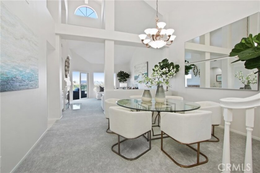 High up on the hill top on a serene & quiet location behind private gates sits this gorgeous home with tranquil view of hillsides, mountains and distance ocean views of Dana Point Harbor. Recently updated with soft colors & quartz counters, stainless steel appliances, white cabinets, all new daylight fixtures, new paint & new flooring. This very spacious home offers elegant, very light & bright main floor living & dining rooms with high ceilings, fireplace, wet bar and sliding doors open to ocean view deck. Right of the beautiful newly designed kitchen is a cozy family room which opens to large deck, great for having a morning coffee or enjoying a glass of wine while taking in the beautiful surrounding views or a colorful sunset. Main floor also features a powder & Laundry rooms and direct access to two car garage. Master suite takes up an entire lower level featuring large retreat, cozy office, huge master bath with walk in shower & soaking tub, walk in closet and a large deck to enjoy the gorgeous evening views. On the top level 2 guest suites offer total privacy and a surprise peak view of ocean. Guard gated Laguna Sur offers great amenities like easy to access 2 pools & spas, tennis courts, lots of beautiful walking trails & 2nd gate for access by residents. A short drive to Laguna to enjoy fine shops & fine restaurants or to Dana Point Harbor for water sport activities. Trustee sale no court approval needed, Please call to see this home it is priced to sell fast.