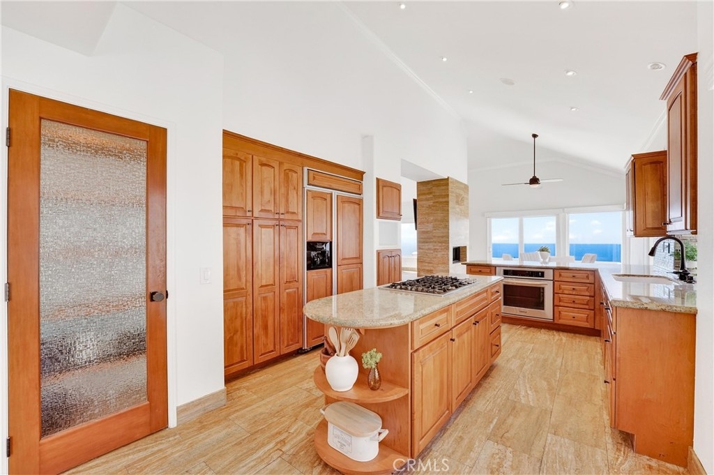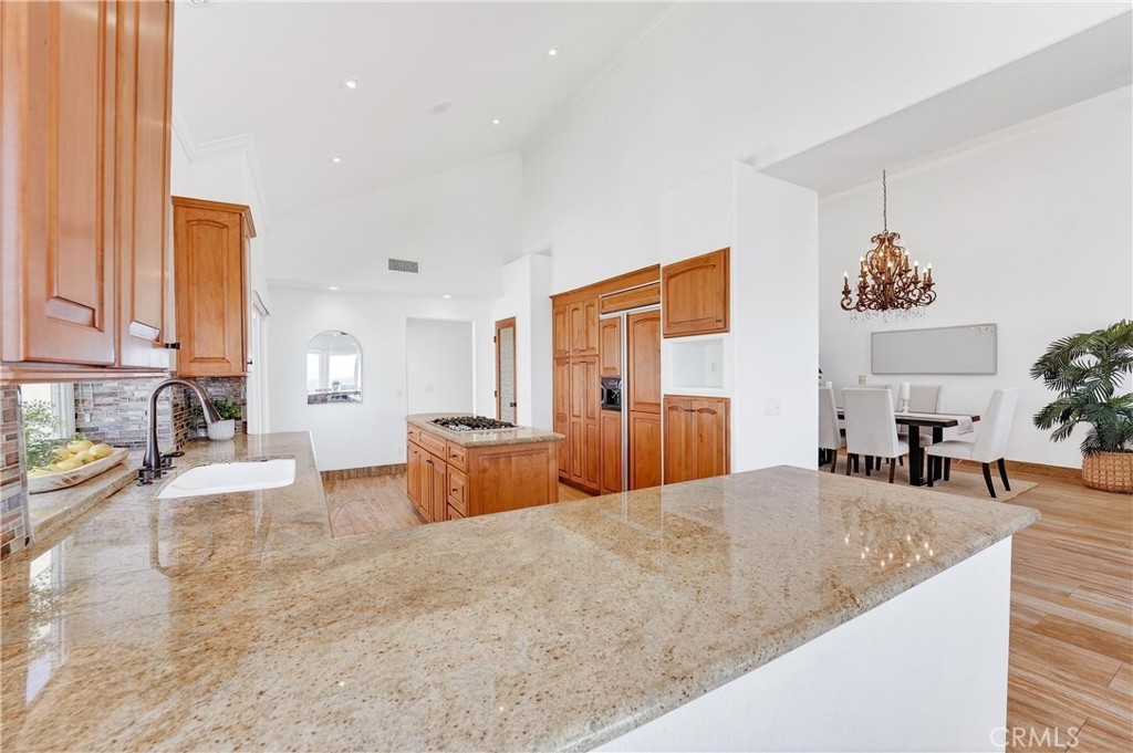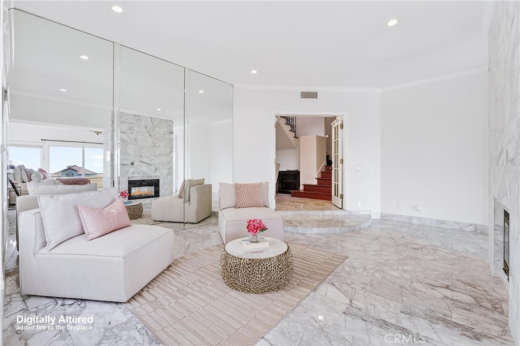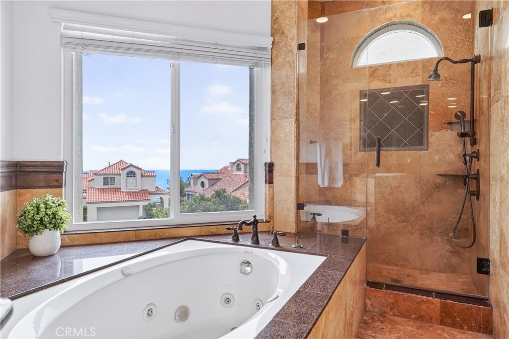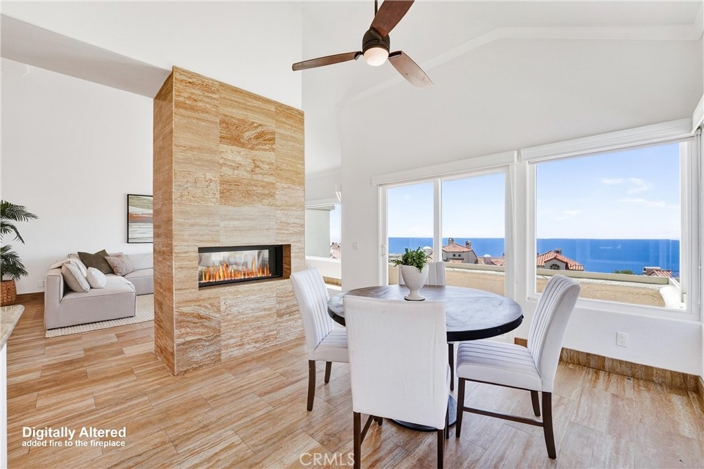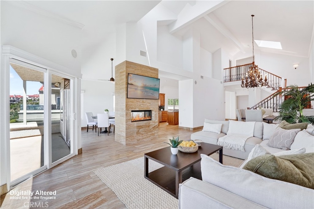 Experience refined living at 49 Marseille, capturing approximately 120 degrees of sweeping ocean and coastline views, including daily sunsets over Catalina Island, San Clemente Island, Long Beach Harbor and city lights, along with glimpses of the Montage coastline and white water shoreline. Set within the guard gated community of Laguna Sur with 24 hour attended security, this coastal residence features light filled interiors, soft neutral tones, and seamless indoor outdoor flow, creating an atmosphere of refined living enhanced by Calacatta marble finishes and timeless architectural details, including a sweeping wood staircase, hardwood flooring, crown molding, and dramatic cathedral ceilings. The modern kitchen with granite countertops and a center island opens to dedicated living and dining spaces framed by expansive windows and sliding glass doors. The main level includes an inviting living area and full bath, while upstairs offers two bedrooms connected by a Jack and Jill bath, plus a versatile bonus room. The lower level features a spacious primary suite with a fireplace, spa style bath, and private patio access. A private resort style backyard completes this exceptional offering of elegance, comfort, and elevated coastal design. With remarkable views and a premier location, this home captures the essence of Laguna Sur living.