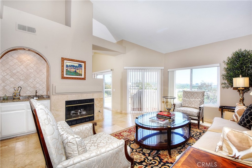 Outstanding views: ocean, city lights, hills and valley views from family room, living room, master bedroom, and 2 private decks. Exclusive Laguna Sur Villa on the summit above Laguna Beach. Guard-gated community has two pools, 2 spas, tennis courts and walking trails. This spacious villa has three bedrooms, including a master bedroom with south coast views , dual-sided fireplace to a private retreat. The main floor includes formal living and dining rooms, kitchen, breakfast nook and family room; all have travertine flooring. Upper level has two bedrooms, one with ocean view, and a Jack-and-Jill bathroom. Kitchen has upgraded appliances and granite counter tops. Enjoy the ambiance of this very special and private location. Very light and bright