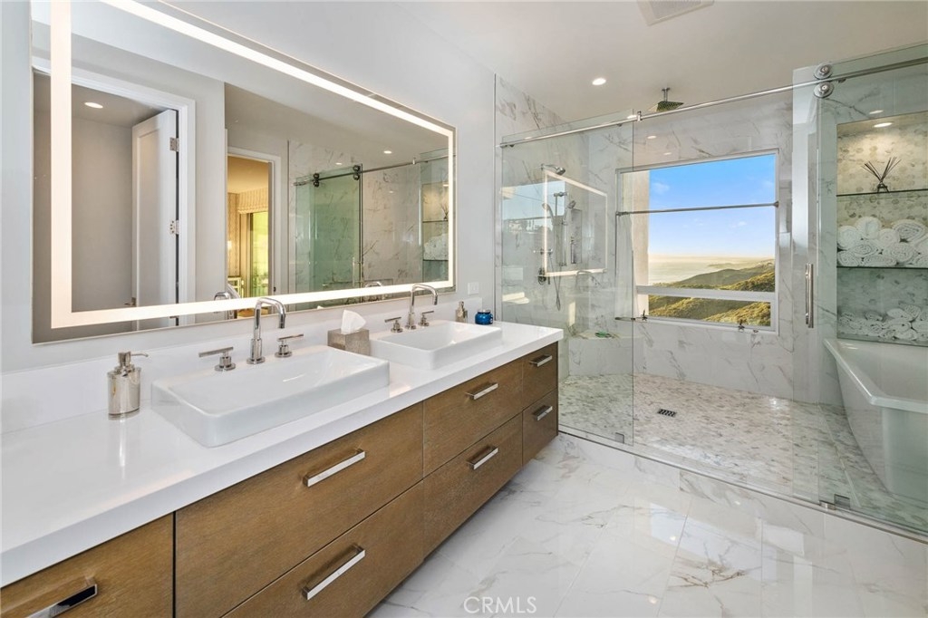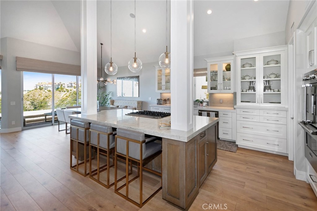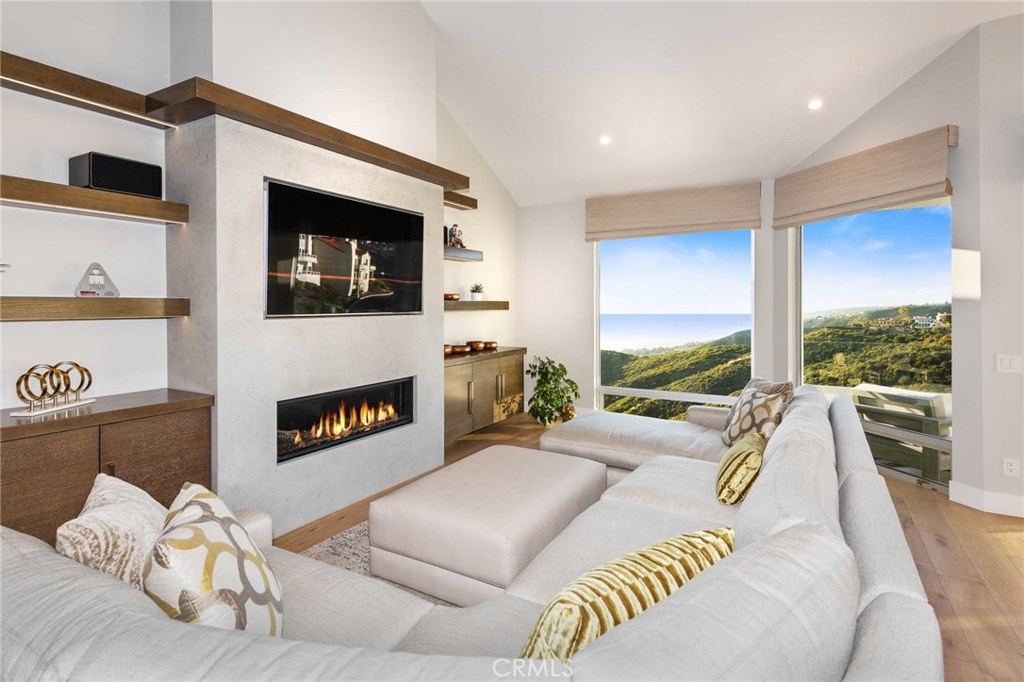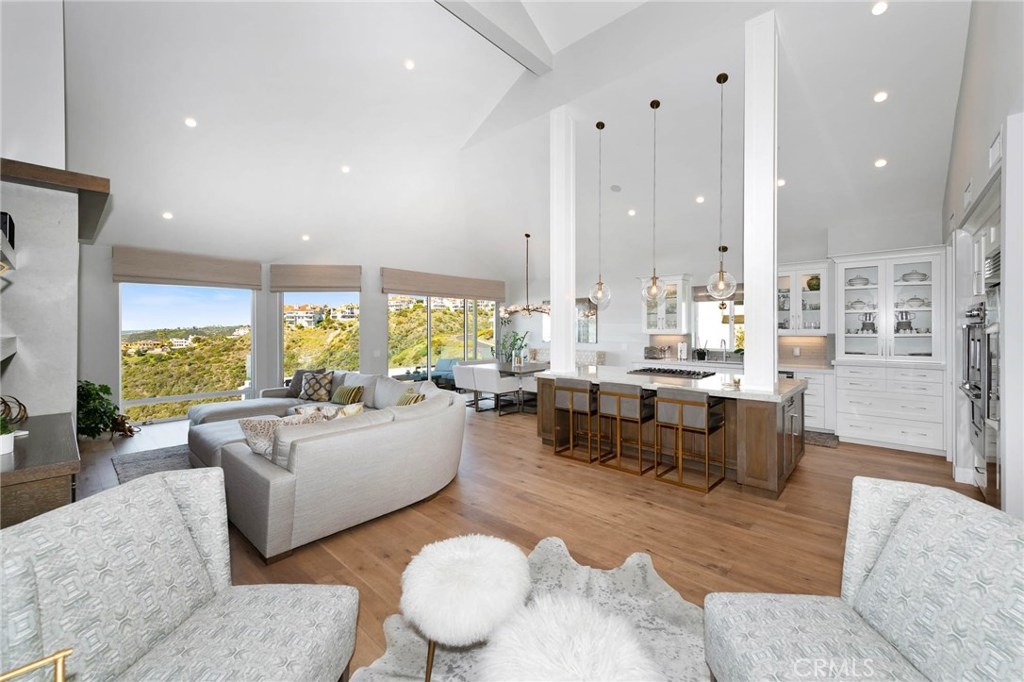 Stunning, unobstructed front-row coastline views of Catalina Island, Laguna Beach, Palos Verdes, crashing waves, city lights and golden sunsets over the Pacific. These spectacular, "jaw-dropping" panoramic views are some of the best anywhere in Orange County. Located on a prime corner lot, every inch of this amazing home has been recently and painstakingly remodeled, expanded and renovated to perfection. Highest quality design, materials and workmanship has created an architectural masterpiece right out of a magazine. The main level Great Room offers soaring ceilings, wide-plank hardwood floors, open gourmet kitchen with contrasting center island, pendant lighting, stone countertops, Sub Zero refrigerator, high end appliances and custom cabinets. This level includes formal dining and living areas with fireplace and terrace to entertain while overlooking the awe-inspiring views. The lower level master suite offers the same mesmerizing views and includes a sitting area, fireplace, covered loggia and opulent master bathroom of porcelain tile featuring seamless glass enclosed shower and free-standing tub plus walk-in closet with custom organizers. The upper level features 2 bedrooms with Jack and Jill bath plus an open loft with built-in desk,cabinets and skylight. Other features include central A/C, epoxy garage floor, custom window coverings, stone entry and full driveway. Laguna Sur HOA amenities include guard gated entrance, pool/spa and tennis courts. Easy to add an elevator