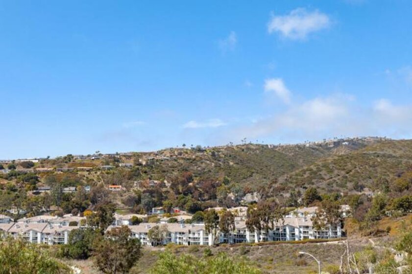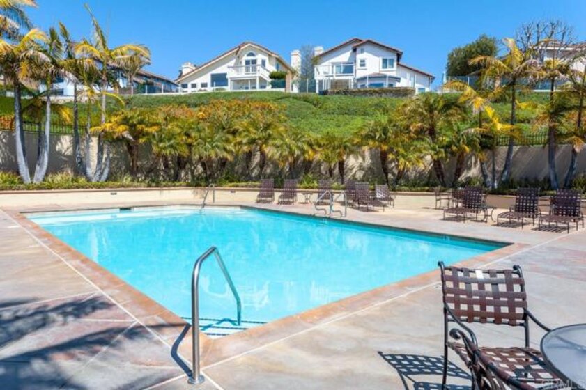 Enjoy beautiful views from this lovely Seabreeze cul-de-sac townhome. 2 miles from the beach and steps away from the Salt Creek beach trail which is just an 11 minute bike ride to the beach. This condo features a beautiful backyard up against the community tennis courts and just a short walk to the wonderfully kept community pool and spa. Upon entry to this dashing home, you are greeted with a beautiful vaulted ceiling living room fully equipped with a fireplace 1-bedroom and full bath on main level - currently used as office/den. High-beam ceilings. Gas Fireplace in Livingroom. Balcony off Master perfect to enjoy sunsets and views of entire Laguna Riviera. Downstairs patio ideal for entertaining. Designer chandeliers throughout. Also, included is $10K Acorn stair lift (not currently installed). Upstairs master and second bedroom en-suite bathrooms. Tons of garage storage with stair drop-down attic. Newer appliances. Epoxy Garage flooring. Custom rear yard landscaping. Seller to pre-pay at closing roof assessment.