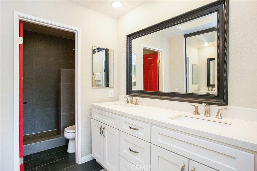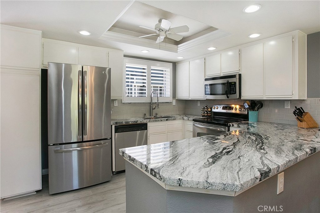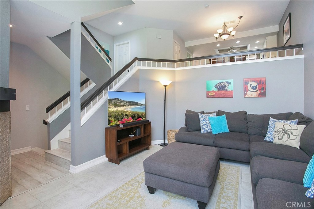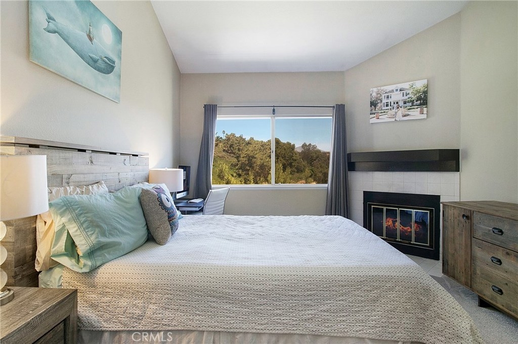 Highly upgraded 2 bedroom town home with a view in the prestigious community of Marin Colony, Laguna Niguel. This light and bright floor plan is very private and has no one above or below. The living room showcases a cozy fireplace, vaulted ceilings, and views of hillsides and nearby trails. New contemporary laminate flooring throughout main living spaces. The beautiful kitchen features new granite counter tops, repainted cabinets and stainless steel appliances. There is a small nook/den off of the kitchen that can be used as an office. The master bedroom suite offers a fireplace, vaulted ceilings, and an amazing view! A stylish barn door opens up to an upgraded master bathroom with new cabinets, quartz counter tops, and modern tiled shower enclosure. A large walk-in closet provides plenty of space. The second bedroom also has its own full bathroom and vaulted ceiling. Laundry room is inside. Large two car garage with direct access. Association pool and spa. Low HOA dues, no mello roos. Conveniently located near major shopping center, schools, and parks. Be sure to view our 3D virtual tour!