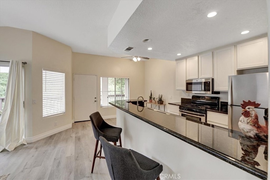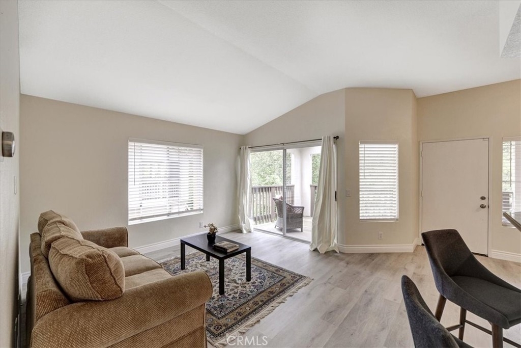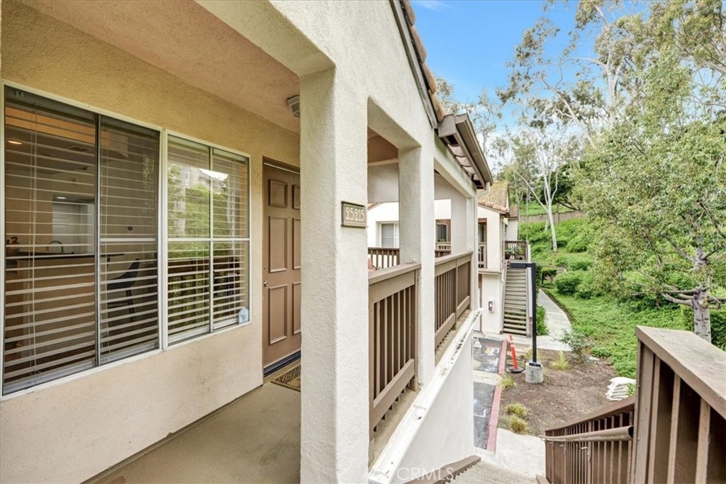 Welcome to this beautiful 1 bedroom, 1 bath, end-unit condo in the Milano community of Laguna Niguel. This upper-unit features a one car garage directly below it and no other units above or below. A spacious front patio, perfect for enjoying Laguna Niguel's coastal climate greets you as you approach the front door. Right outside the unit you will find many trees and lush greenery lending to a peaceful setting. Inside you will find an open living and kitchen space with a sliding door leading to the front patio. In the bedroom you will find a walk in closet and in-unit laundry is conveniently located outside the room. Enjoy the pool/spa, clubhouse and other amenities offered by the Milano community. The property is situated in a prime location with quick access to freeways, amenities, shopping and only a short drive from Orange County’s world class beaches!
