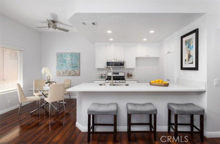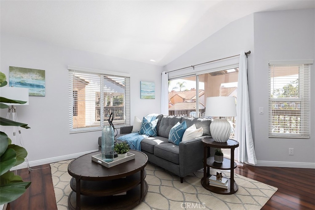 Meticulously upgraded one bedroom, one full bath turnkey home in the lovely community of Milano at Rancho Niguel . Enjoy the privacy of this corner lot location with a carriage unit design. You will absolutely love the private staircase entry that leads to your oversized private patio which provides scenic views of your beautiful community. Directly below the unit is your oversized garage with plenty of extra storage space. Upon entering the home, you will notice the open floor plan with high vaulted ceilings with LED recessed lighting, a brand new remodeled kitchen with quartz countertops and brand new stainless appliances. Spacious dining area with additional kitchen bar seating. The remodeled bathroom features new quartz countertops and hardware as well as new vanity, mirror and lighting. The spacious master bedroom has vaulted ceilings that lead to an oversized walk in closet. The entire home has been recently painted throughout, has newer dual pane windows and was recently completely re-piped. Convenient washer and dryer hookups are located inside the home. Enjoy living at Milano with its HOA amenities that include a large pool, spa, a mini gym and a clubhouse. One of the most desirable neighborhoods in Laguna Niguel. Conveniently located near the 5 freeway and 73 toll road, shopping, movie theaters, Starbucks, Costco, Nordstrom Rack, Lifetime Fitness and the Mission Viejo Mall.