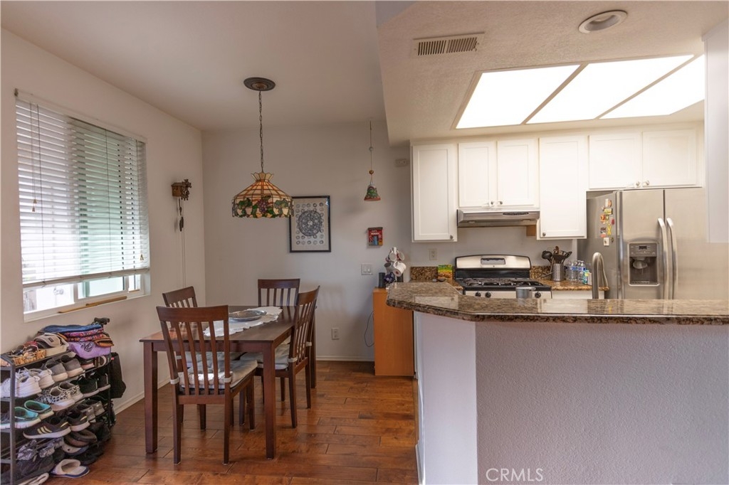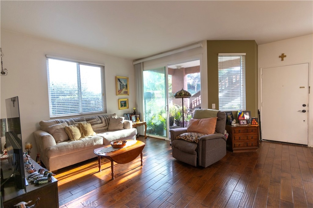 Beautifully upgraded 1 bedroom, 1 bath home with open floor plan and front patio. This unit includes a 1 car garage with ample guest parking available throughout the community. Residents enjoy exclusive access to a sparkling pool, relaxing spa, and a welcoming clubhouse. New air conditioning compressor was just installed. First floor end unit condo with Walking distance to restaurants, movie theater, grocery store and shops at The Center at Rancho Niguel. Less than 10 miles from Laguna Beach, Dana Point, San Juan Capistrano and Irvine Spectrum. ADDITIONAL FEATURES: hardwood flooring, granite counters in kitchen.