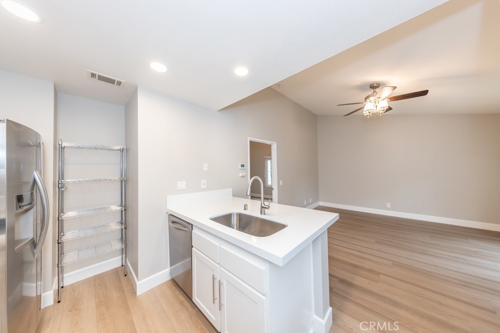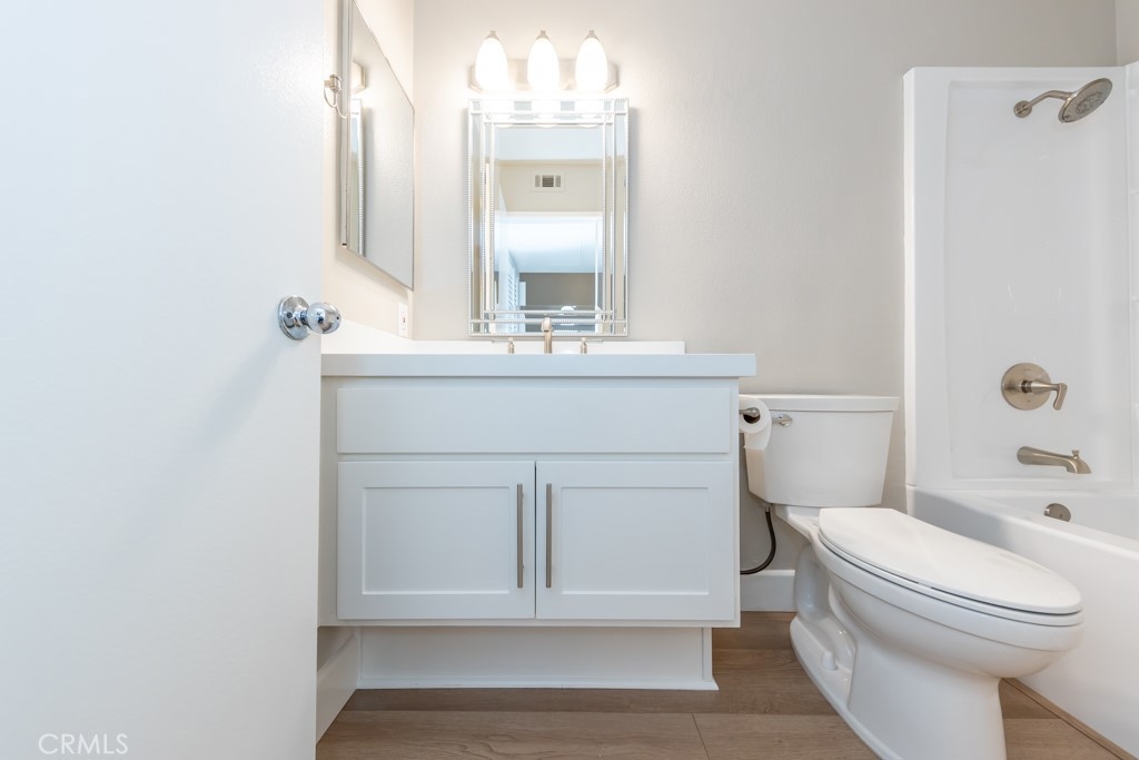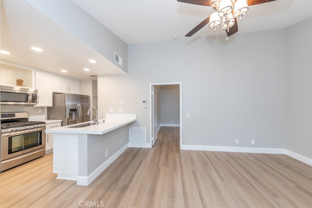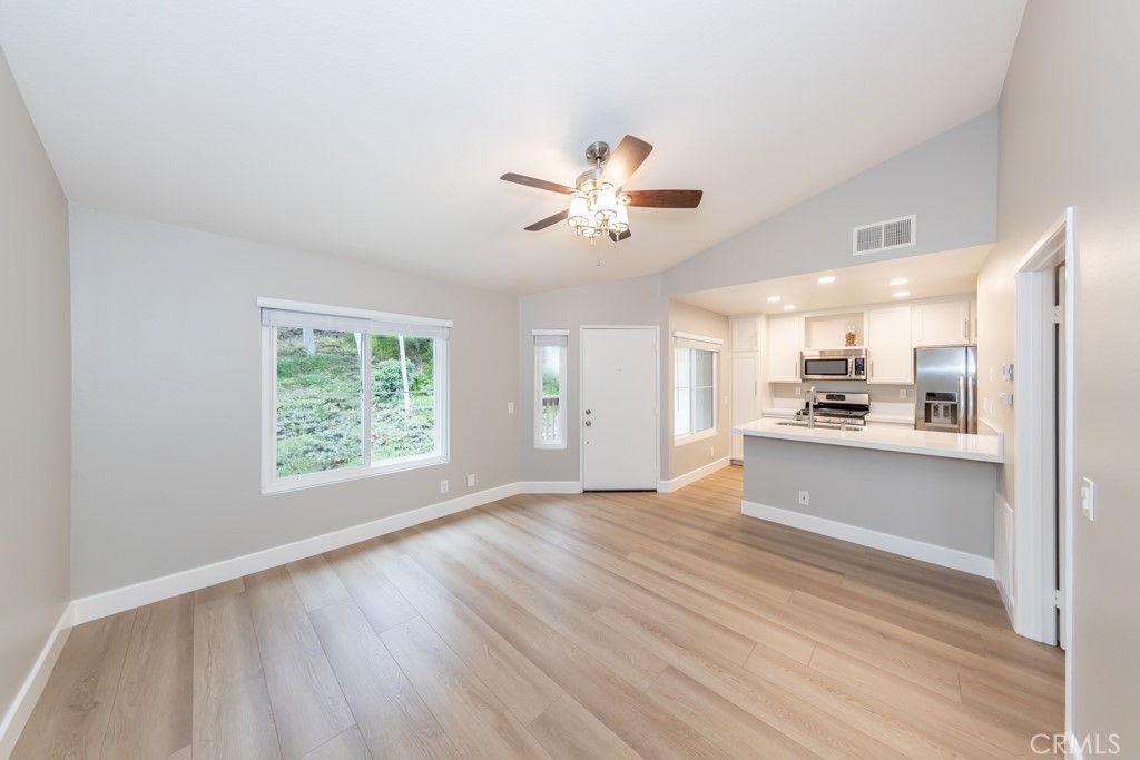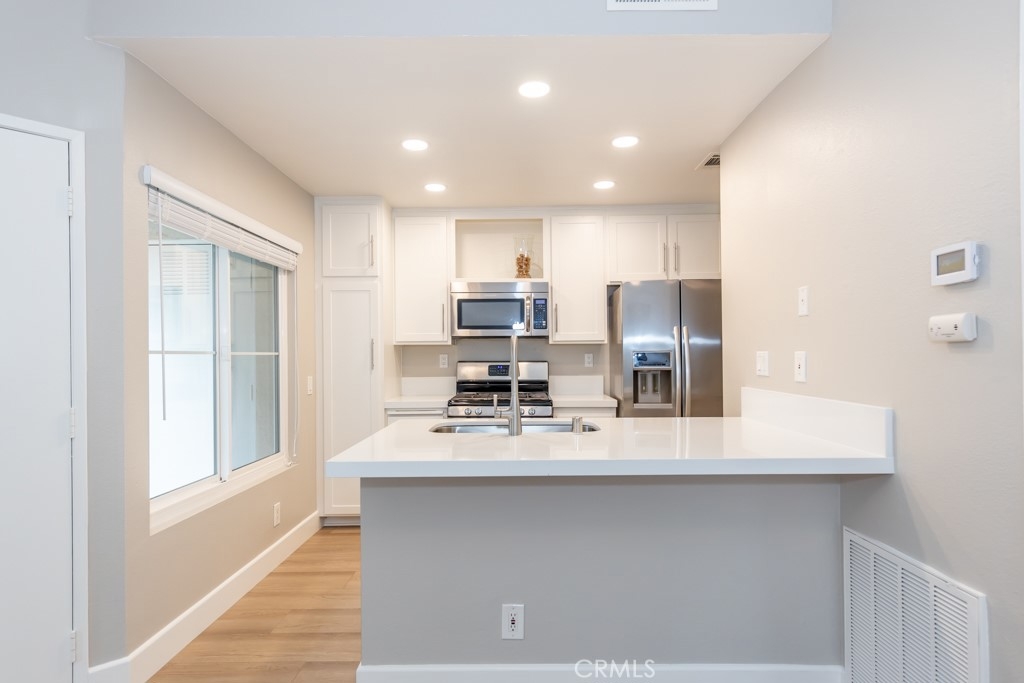 Beautiful quiet 1 bedroom, 1 bathroom upper end unit condo with a 1-car garage that overlooks a greenbelt in the Milano community of Laguna Niguel. Recent updates include, new waterproof flooring and new baseboards throughout Kitchen has new quartz counters and single vessel sink with new faucet, cabinet handles and new LED lighting. Bathroom has a new tub/shower, new quartz counter and sink, new faucets, new toilet and new exhaust fan. Newer dual pane windows with new window blinds. Freshly painted interior walls too. Ready to move in and enjoy. The community has been re-piped in PEX and offers a pool, spa small gym and clubhouse and EV charging available. Easy access to both the 5 and the 73 highways for a reasonable commute anywhere in Orange County wherever you need to go. The condo is a short distance to grocery and clothing shopping, dining, entertainment and even a drive through Starbucks. Come check out this Laguna Niguel gem.