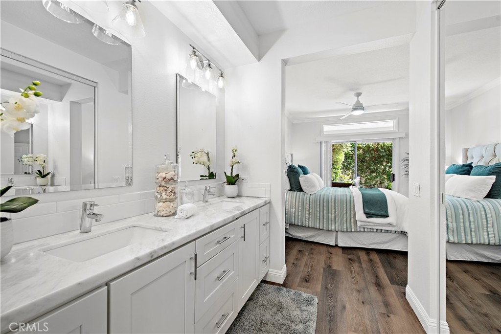 Stunning Upgraded Condo in the sought-after Mirador Community of Rancho Niguel! PHOTOS COMING SOON! Once you step inside, you are greeted with a free-flowing floorplan, new wood -laminate, flooring, and fresh paint throughout. The great room, which is open to the kitchen, features a gas fireplace with a gorgeous, wood beam mantle. The well-appointed kitchen is complete with stainless steel appliances and luxurious marble countertops. A second bedroom in the front of the home has a detached full bathroom with a shower tub. Relax in the generously sized master with adjoining ensuite. A large walk-in closet, upgraded, oversized, shower, and marble countertops are the perfect complement to this room. Enjoy the sunny So-Cal weather outside in your private backyard. Here you can sip your morning coffee or evening cocktails on the large patio deck. Grass and lush landscape provide a peaceful outdoor space. This unit has a 1 car attached garage with direct access as well as, an additional carport. The Mirador community hosts a pool, spa, and BBQs. In Rancho Niguel, you are minutes to shopping, great hiking trails, with close access to the toll road and 5 freeway. Don't miss out on making this beauty your own!!