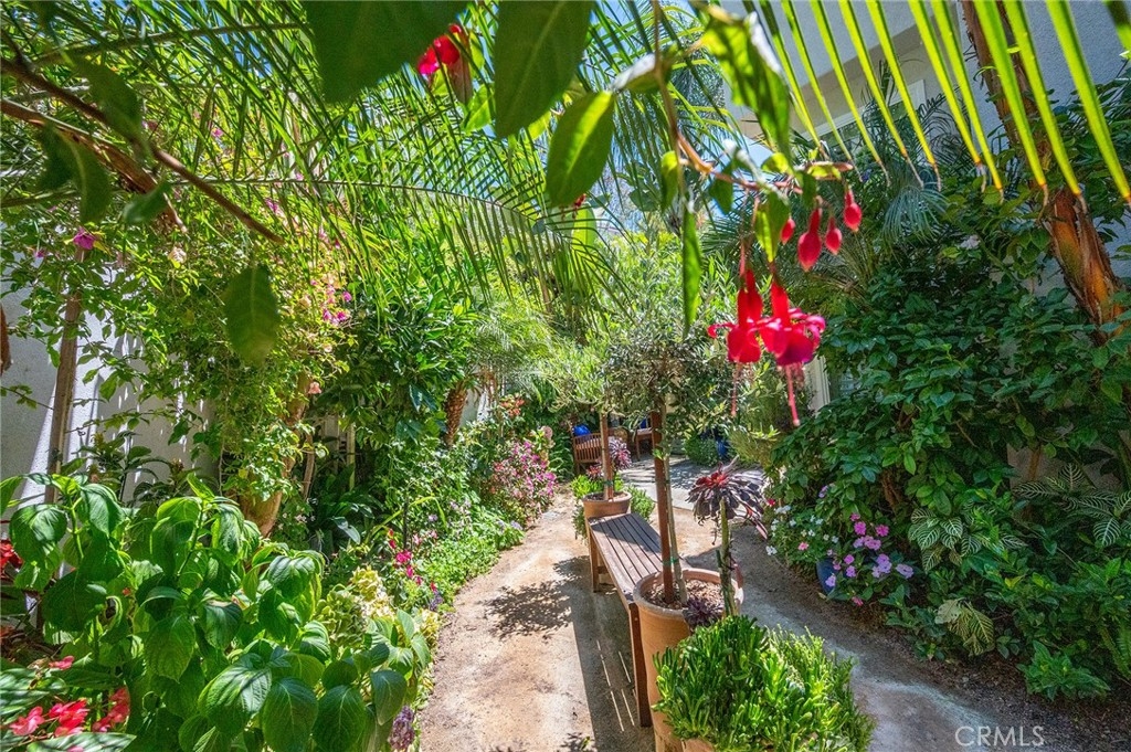Welcome to this beautifully updated, move-in ready end-unit townhome in Laguna Niguel’s coveted Mirador community. Framed by a lush wraparound yard, the home immediately invites outdoor living—mature fruit trees, tropical landscaping, and thoughtfully designed seating areas create a private garden retreat that feels both tranquil and indulgent. Inside, natural light fills the thoughtfully upgraded interior, where the kitchen flows seamlessly into the dining and living areas—perfect for everyday life and effortless entertaining. Crisp quartz countertops, a marble tile backsplash, soft-close cabinetry, and an expanded layout elevate the heart of the home. The living room offers peaceful yard views, a slate-framed gas fireplace, and clean lines thanks to custom wall-concealed TV wiring. A flexible downstairs bedroom—ideal for guests, a home office, or a true third bedroom—overlooks the garden and sits adjacent to a full bath with a frameless glass shower and marble-style porcelain tile, blending coastal charm with contemporary elegance. Upstairs, the primary suite features soaring ceilings, dual closets including a walk-in, and a dual-sink vanity with granite counters and coordinated tile finishes. The secondary suite offers comfort and style with plantation shutters, a ceiling fan, and a chic ensuite bath with quartz counters and designer details. Upgrades throughout include Simonton dual-pane windows, wood-look flooring, LED recessed lighting, high-efficiency toilets, plantation shutters, and a newer HVAC system with booster fans for enhanced upstairs climate control. The professionally designed wraparound yard is both serene and smart. Meyer lemon, tangelo, passionfruit, fig, apricot, plum, olive, and loquat trees surround multiple seating zones, while a smart B-hyve irrigation system automates watering for pots, planters, and even fountains—luxury living with ease. The attached two-car garage offers washer/dryer hookups, custom cabinetry, a deep utility sink, and generous storage. The HOA covers water, trash, exterior maintenance, roof, termite coverage, structural insurance, and access to the community pool and spa—providing peace of mind and simplifying everyday living. Residents enjoy close proximity to award-winning schools, hiking trails, premier golf, dining, and world-class beaches. From sunlit mornings in the garden to golden hour walks along the coast, this is Laguna Niguel living at its finest. Welcome home.