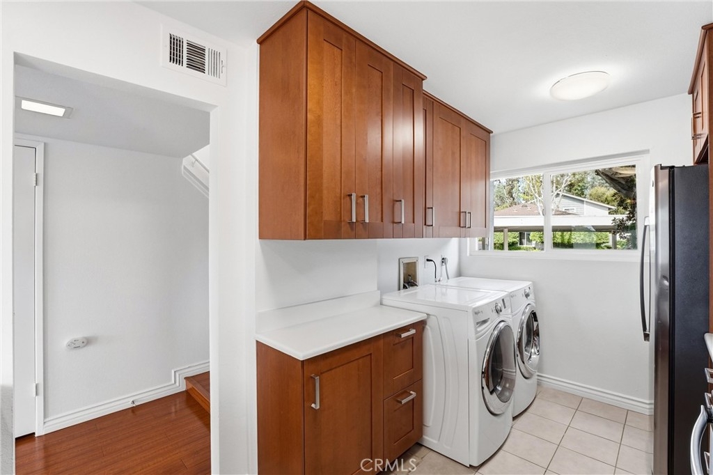 Ocean-close and truly move-in ready! Stunning 2-bedroom, 2-bath townhome-style end-unit condo in the highly desirable Niguel Vista community. This beautifully maintained home features fresh paint throughout, laminate flooring, new carpet upstairs, and porcelain tile in the bathrooms. The upgraded kitchen offers newer cabinetry, stainless steel hardware, and includes a washer and dryer for added convenience. The home also features updated A/C, heating, water heater, and dual-pane insulated windows. Enjoy a larger corner backyard with pavers, offering a private and inviting space ideal for entertaining or relaxing. A versatile under-stair storage area provides potential for a compact home office setup. The unit includes one covered assigned parking space plus ample guest parking. Ideally located in South Orange County near shopping, parks, and just minutes to the coast—less than 5 miles to Salt Creek Beach—offering refreshing ocean breezes year-round. A true turnkey opportunity you won’t want to miss!