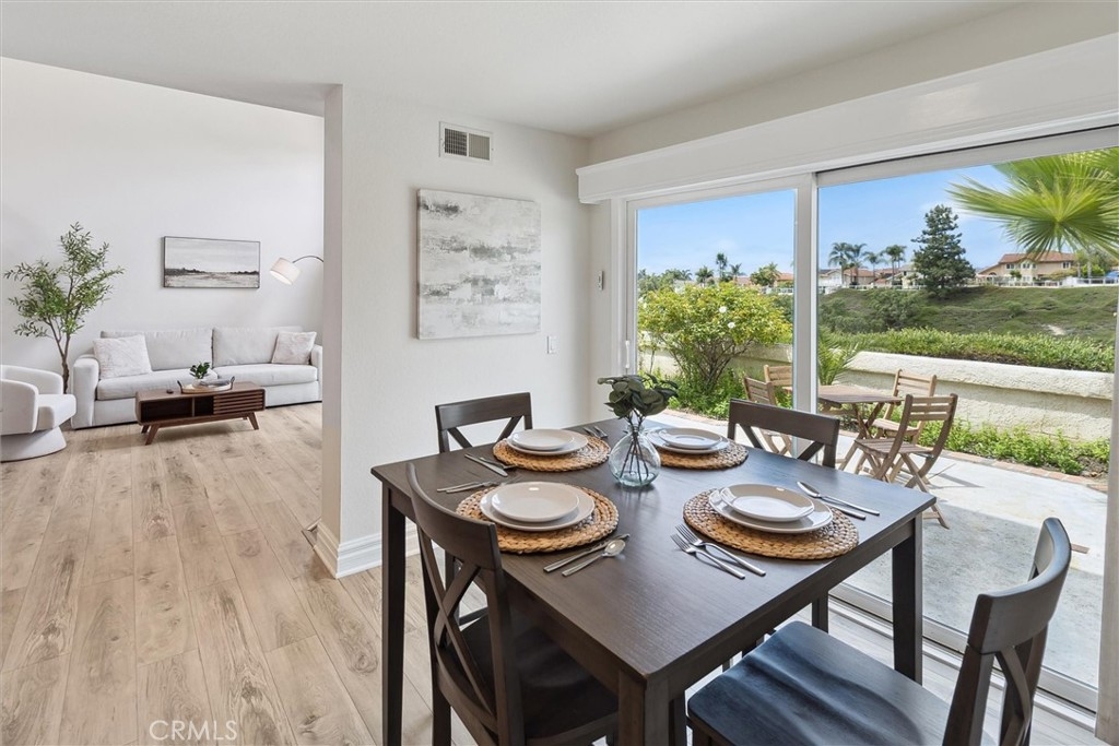 Discover this beautifully updated 3-bedroom, 3-bath Townhouse nestled in the desirable Niguel Pointe development. With one bedroom conveniently located on the main floor, this home offers both comfort and flexibility. The inviting living room features a cozy fireplace and newer floors, while the upgraded kitchen adds a modern touch to daily living. Sliding glass doors from both the living and dining rooms open to a spacious patio with peaceful views and no neighbors behind you—perfect for relaxing or entertaining. Residents enjoy access to community amenities including swimming pools, a spa, tennis courts, and scenic walking trails. Ideally located just minutes from Dana Point Harbor and the beach, this home offers the best of coastal living.