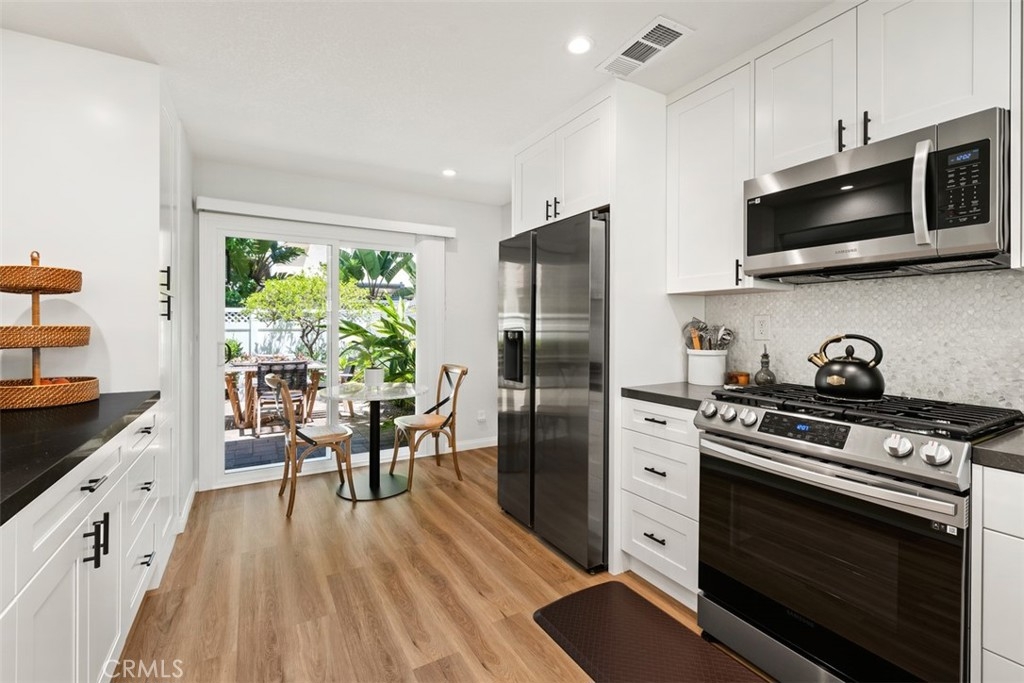 Truly an outstanding Townhome nestled in a quiet location in the popular ‘Niguel Pointe’ community of Laguna Niguel Don’t miss this exceptional opportunity to own a meticulously upgraded and maintained 2-bedroom, 2.5-bath property that is truly ‘turnkey’. This beautiful home which was fully remodelled in the calendar year of 2023, features numerous upgrades and modern finishes throughout. Enjoy newer dual-pane windows, sliding glass doors, screens, vertical and faux wood blinds, and energy-efficient LED lighting inside and out—including the garage. All plumbing fixtures have been upgraded, and the home has been fully re-piped with PEX piping for peace of mind. Step inside to contemporary ‘beach feel’ and cozy living/family room with a stunning new decorative tile fireplace with the warm tones of luxury vinyl flooring. Central air conditioning for year-round comfort. The stylish kitchen boasts ample cabinet storage and new Samsung stainless steel appliances, including a refrigerator, microwave, dishwasher, and a freestanding gas range. Upstairs, both bedrooms offer ensuite bathrooms and mirrored closet doors. The spacious primary suite includes vaulted ceilings and a private balcony-style deck offers space for all day relaxation in private. Additional highlights include: Downstairs powder room, direct-access 2-car garage with new floor coating, LED lighting, and laundry hookups, enclosed rear patio with newer Belgard pavers, pea gravel, and refreshed landscaping—a perfect outdoor retreat with vinyl fencing backing to a tranquil greenbelt. Located on a quiet cul-de-sac with extra off-street parking. Community amenities include a swimming pool, spa, and tennis court—ideal for an active lifestyle. Perfectly situated just minutes from the Ocean Ranch Shopping and Dining precinct including Trader Joes, Ralph’s and Cinepolis luxury cinemas , and Dana Point Harbor with its Lantern District and numerous dining and shopping opportunities, the famed Salt Creek Beach with its renowned surfing breaks, as well as luxury resorts like the Ritz Carlton and the Waldorf Astoria. This exceptional property combines location, lifestyle, and comfort. This is a must see! —schedule your private showing today!