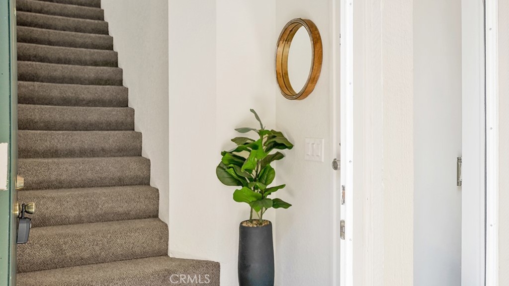 2-Bed, 2-Bath Condo in Laguna Niguel’s Sought-After Palm Court Community. Discover coastal living in this beautifully maintained upper carriage unit featuring vaulted ceilings, abundant natural light, and a cozy fireplace. The open floor plan seamlessly connects the living room, dining nook, and kitchen, creating a bright and inviting space that flows to a private outdoor patio—perfect for morning coffee or evening relaxation. Enjoy two spacious bedrooms positioned on opposite sides of the home for added privacy. The guest bathroom offers a walk-in shower, while the primary suite features a shower-tub combo and its own private patio retreat. Additional highlights include central A/C, track lighting, in unit stackable laundry and a one-car attached garage with storage. Residents of Palm Court enjoy resort-style amenities including a sparkling pool, spa, and ample guest parking. Located just off Golden Lantern, you’re minutes from Laguna Niguel’s shops, dining, hiking trails, and only a short drive or bike ride to the beach—embracing the very best of Orange County living.