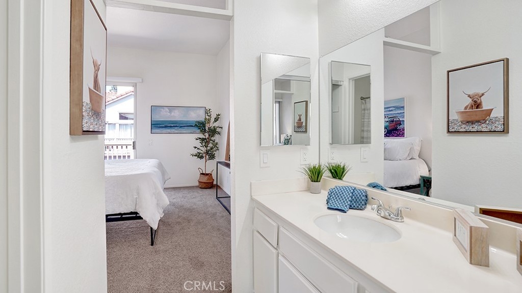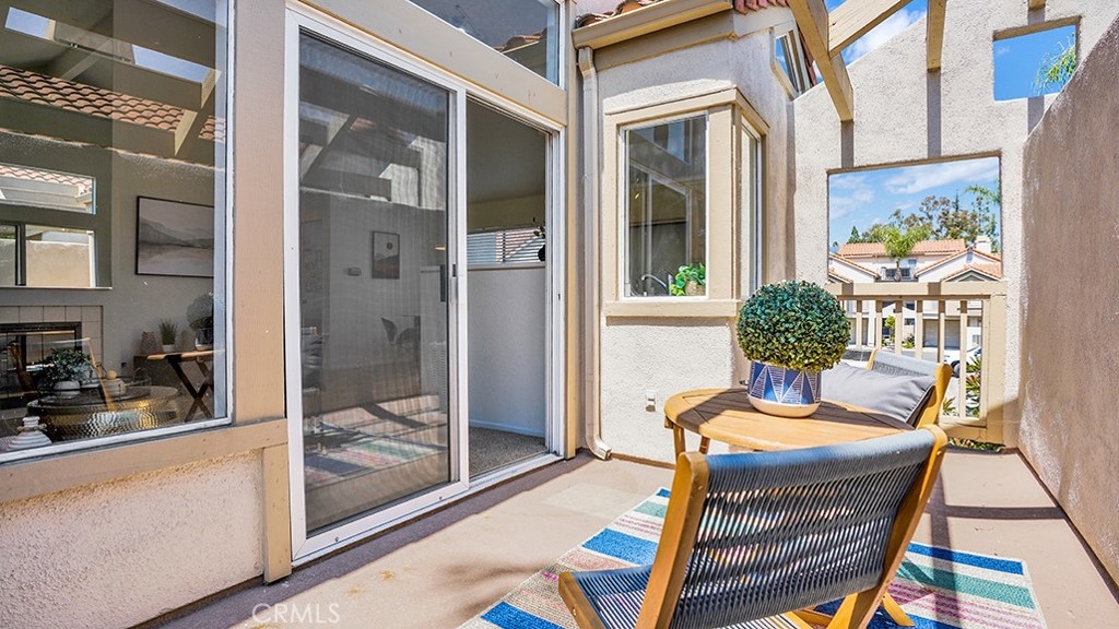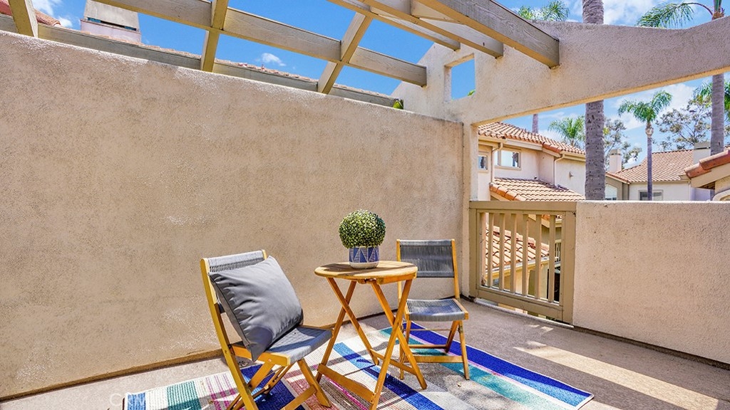 2-Bed, 2-Bath Condo in Laguna Niguel’s Sought-After Palm Court Community. Discover coastal living in this beautifully maintained upper carriage unit featuring vaulted ceilings, abundant natural light, and a cozy fireplace. The open floor plan seamlessly connects the living room, dining nook, and kitchen, creating a bright and inviting space that flows to a private outdoor patio—perfect for morning coffee or evening relaxation. Enjoy two spacious bedrooms positioned on opposite sides of the home for added privacy. The guest bathroom offers a walk-in shower, while the primary suite features a shower-tub combo and its own private patio retreat. Additional highlights include central A/C, track lighting, in unit stackable laundry and a one-car attached garage with storage. Residents of Palm Court enjoy resort-style amenities including a sparkling pool, spa, and ample guest parking. Located just off Golden Lantern, you’re minutes from Laguna Niguel’s shops, dining, hiking trails, and only a short drive or bike ride to the beach—embracing the very best of Orange County living.