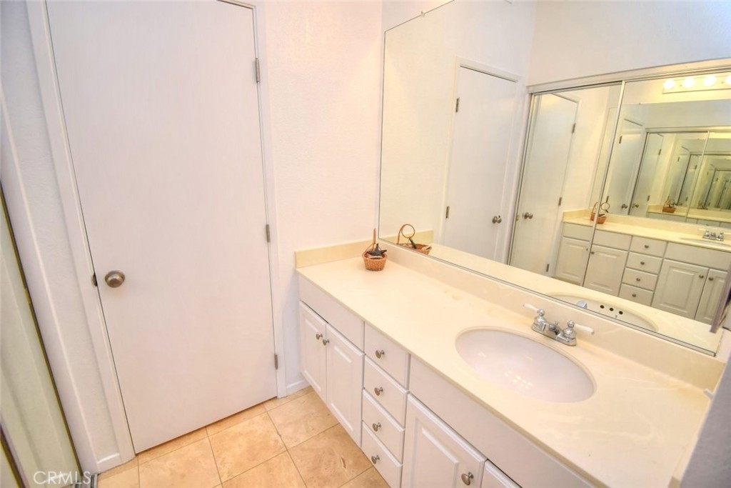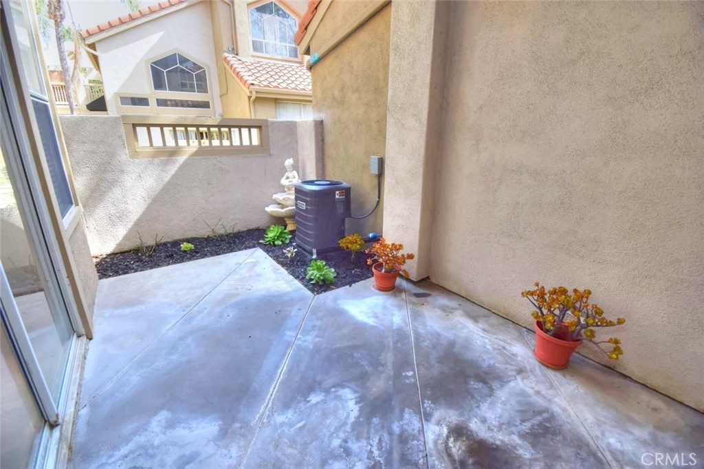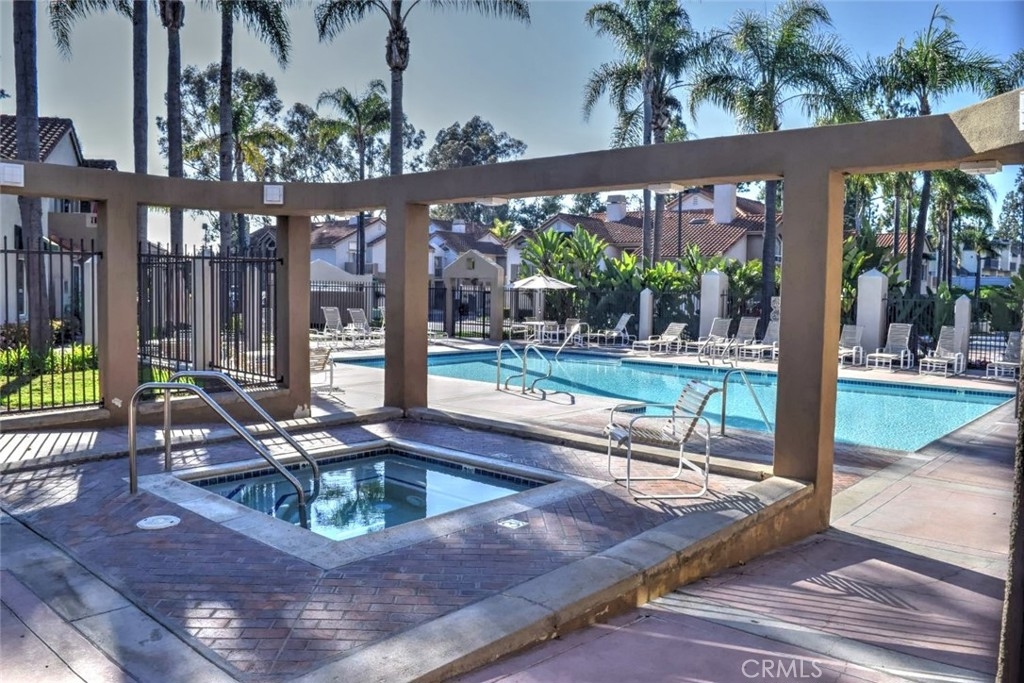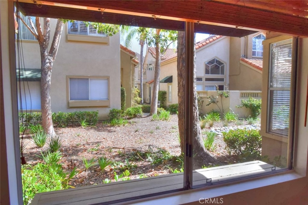 NO STEPS to this Large Single-Story, One-Bedroom-Plus unit in the highly desirable community of Palm Court. This freshly painted open floor plan offers a large living room - which flows to both a separate dining area and an adjoining sunroom. The sunroom shares a double-sided fireplace with the living room and has large windows, cathedral ceilings, and a sliding glass door offering private access to the enclosed patio. The multi-use sunroom can be used as a den/office/bedroom/nursery. Large windows and a sliding glass door create a light and bright area with tranquil views to the private woodsy area behind the home. Light and bright master bedroom with walk-in closet. Open kitchen with granite counters and self-closing cabinets. Attached direct access to one car garage – with ample parking for additional cars nearby. Inside laundry. Palm Court offers two pools, two spas, two tennis courts, a playground, and paved walking trails. Walking distance to George White Elementary, Chapparosa Park, entertainment, shopping and restaurants.