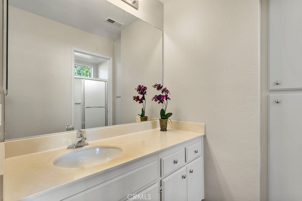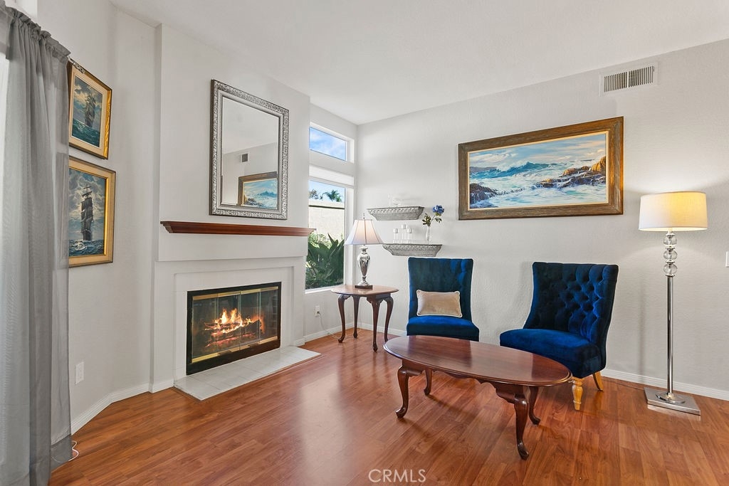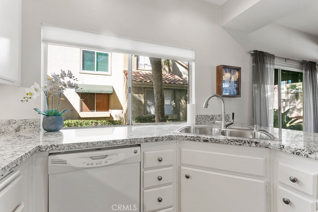 Welcome to Your New Home in Palm Court, Laguna Niguel! This beautiful ground-floor end unit offers comfort, convenience, and style. Featuring laminate flooring throughout, this home is filled with thoughtful upgrades, including custom cellular shades on every window. The Primary bedroom boasts an en-suite bathroom with a wall-length mirrored closet. The bathroom is designed with a separate sink and shower area, complemented by a linen closet in between for extra storage. The second bedroom offers ample closet space and is conveniently located next to a full bathroom with a shower-tub enclosure. In the hallway, you’ll find another linen closet for additional storage. The home also features an attached 1 car garage with plenty of storage space and a Kenmore stackable washer and gas dryer for added convenience. Enjoy outdoor living on your cozy patio—perfect for entertaining with space for a table and chairs just outside the living room. Inside, the living room includes a fireplace (Gas Fireplace is inoperable, contact agent for more details) and connects to a separate dining area. The kitchen is a chef’s delight with granite countertops, stainless sink, stainless steel electric stove oven, LED lighting, and plenty of cabinet space. Palm Court offers wonderful amenities, including a community pool, spa, tennis courts, and a tot lot for your enjoyment. This condo is an ideal starter home or investment property—don’t miss out on this opportunity!