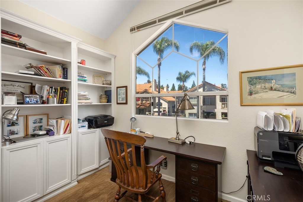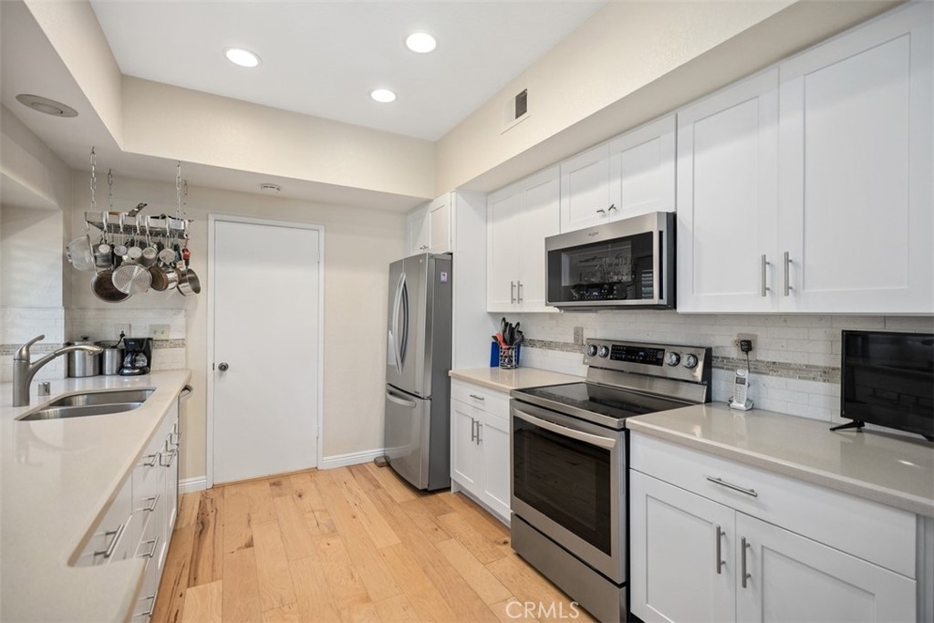 Family neighborhood in Palm Court! Close to beaches and within walking distance to George White Elementary, this two bedroom-two bathroom-PLUS LOFT in the desirable PalmCourt neighborhood is a rare find. One bedroom and one full bathroom are downstairs and there is one attached garage with direct access. Beautifully newly remodeled kitchen with newer appliances. This lovely home features vaulted ceilings, is light and bright, and has motorized blinds and plantation shutters. The electric stove can be switched to gas. Close to shopping, beautiful trails, schools, and entertainment.