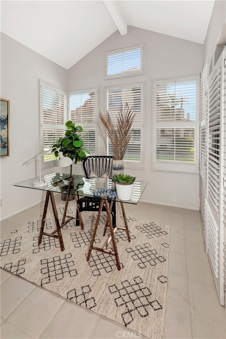 Chic SINGLE LEVEL home has one large bedroom and an additional office/sunroom that can be easily converted into a 2nd bedroom. Model match sold at 6 Reggae converted and backed up to Golden Lantern at 575K 7 months ago. This beautifully upgraded and ideally located and coastal close with a CALIFORNIA ROOM for outdoor entertaining to impress! IDYLLIC SERENE LOCATION is the pinnacle element of this rare single-story property! The entrance into this lovely home is enchanting and inviting with a lush and cheerful garden. This adorable home has beautiful architectural nuances and is enhanced with spectacular natural lighting with floor-to-ceiling windows ensconced in lovely plantation shutters to create a wonderful ambiance of living space. A darling flow-through fireplace in the living room also provides a dramatic setting in the garden-like bedroom/den with a view to a beautiful greenbelt area. The sparkling white kitchen is adjacent to the attached garage for added convenience. There is a generously sized bedroom with rustic wood-style flooring in a quiet setting with a walk-in closet and an attached vanity area that flows into the adorable bathroom. The bathroom has updated lighting, a tub to soak in, and a convenient stackable washer/dryer area. This home has an attached one-car garage, and the community amenities are fabulous! Amenities include lighted tennis courts, 2 sparkling association pools, 2 Jacuzzi and tot lots. This home is ideally located near Dana Point Harbor and beaches as well as great shopping, entertainment with easy freeway access