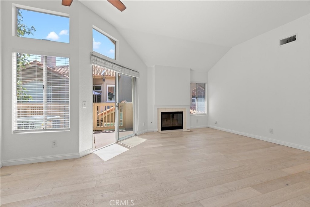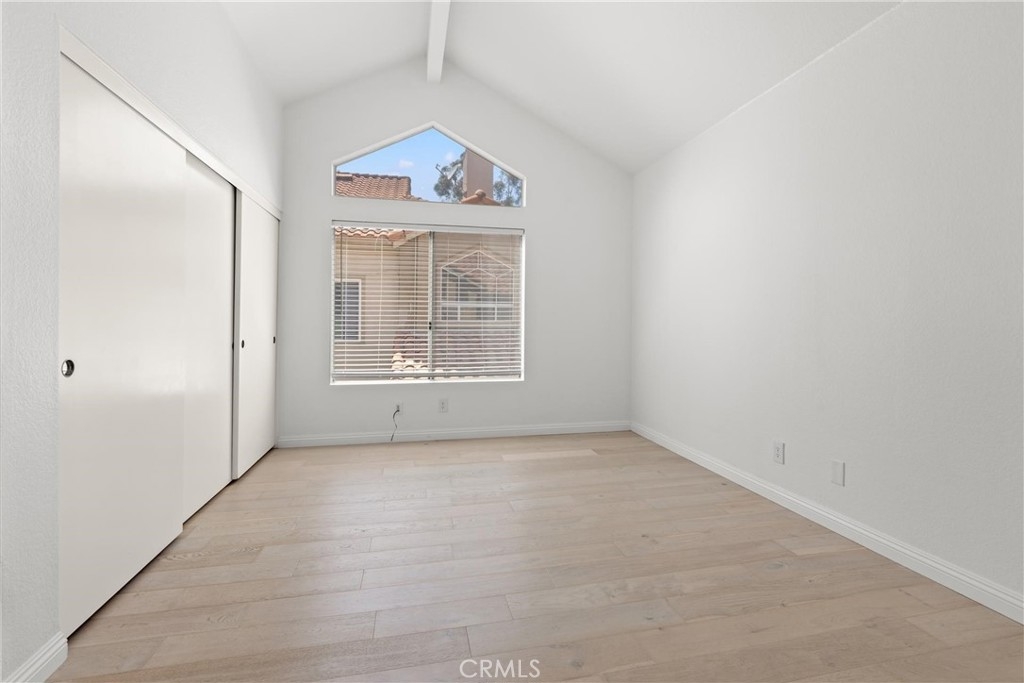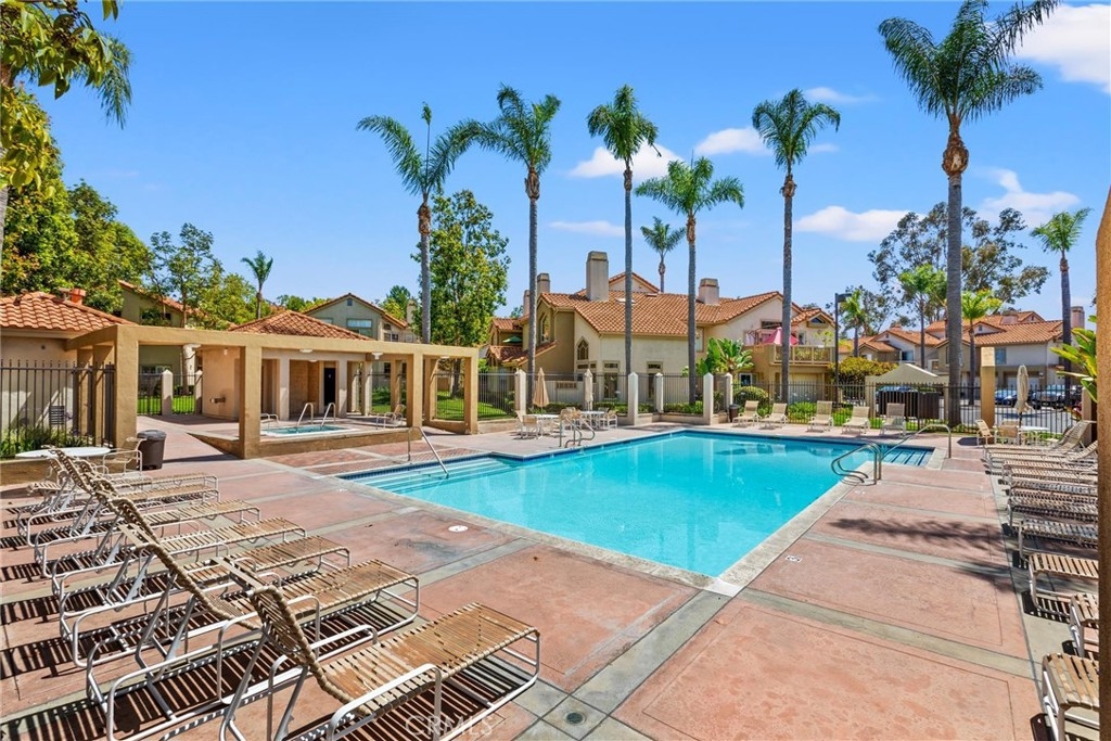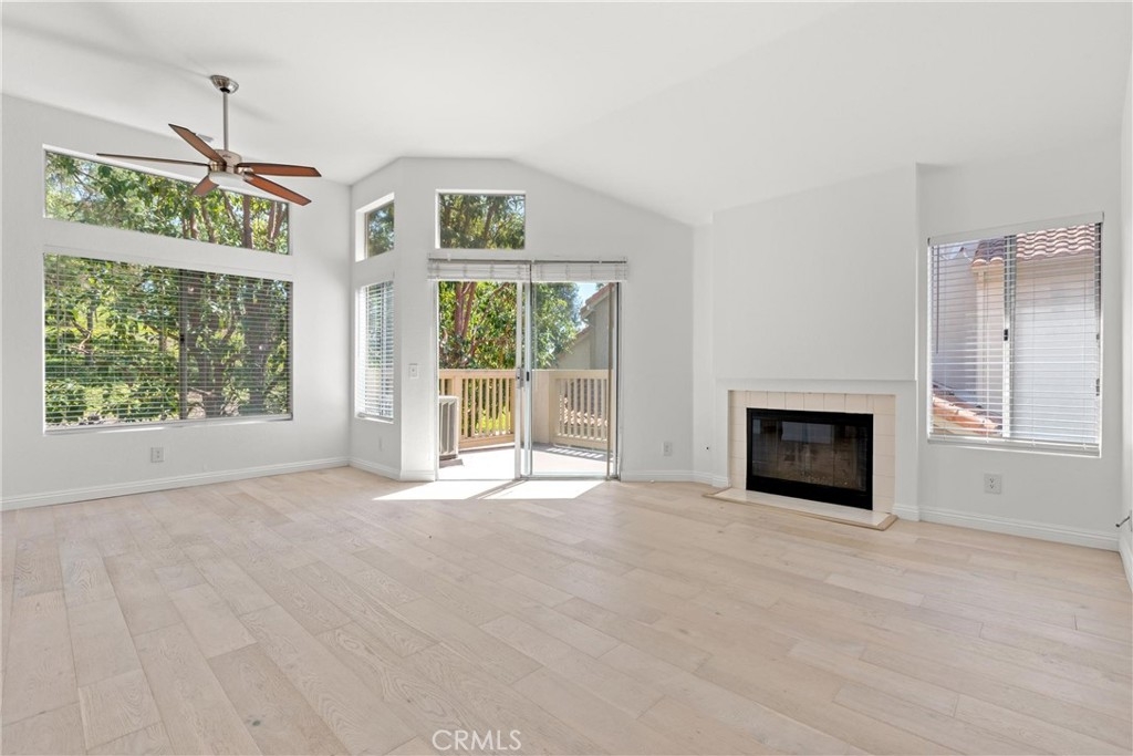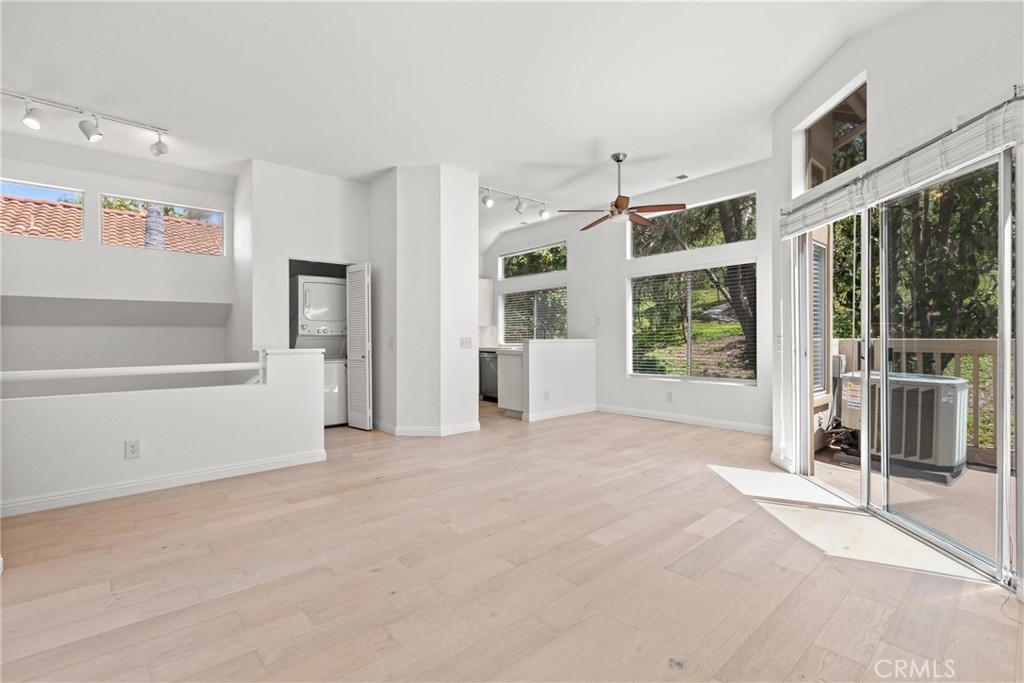 Discover this outstanding 2-bedroom, 2-bathroom upper-level carriage unit in the highly desirable Palm Court community of Laguna Niguel. This light-filled residence features an open and spacious floor plan with vaulted ceilings, a cozy fireplace, central air conditioning, and an indoor washer and dryer. The home is designed for comfort and functionality, with elegant window shades and what appears to be new hardwood flooring. One of the standout features of this home is its beautiful and relaxing tree-lined view, offering a serene and private setting. Step outside onto the private deck, which extends from the living area and provides a peaceful retreat with no neighbors behind you—a rare and sought-after feature. The primary suite offers a double-door entry, vaulted ceilings, spacious closets with built-in organizers, and an en-suite bath. The kitchen is well-appointed with a 4-burner electric range, stainless steel refrigerator, stainless steel sink, and dishwasher. This home also includes an attached single-car garage with direct access, plus a driveway for additional parking. Residents of Palm Court enjoy resort-style amenities, including lighted tennis courts, two community pools, two hot tubs/spas, and access to scenic walking trails. Conveniently located just minutes from Marina Hills Shopping Center, which offers dining, grocery stores, and retail shops. Enjoy proximity to world-class resorts like the Waldorf Astoria and Ritz-Carlton, as well as the renowned Salt Creek Beach and its famous surf breaks. The Dana Point Harbor and Lantern District are also nearby, offering exceptional shopping, dining, and entertainment.