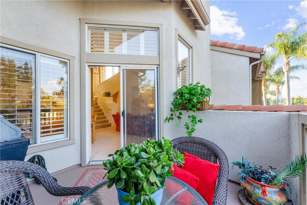 NEW LOWER PRICE - DON'T MISS THIS ONE! Discover the perfect blend of luxury, privacy, and comfort at 8 Reggae Court, located in the highly desirable Palm Court Community of Salt Creek in Laguna Niguel. This beautiful 2-bedroom, 2-bathroom condo is nestled in the peaceful foothills, offering a serene lifestyle with breathtaking views. Step inside this popular model and be greeted by an open floor plan featuring vaulted ceilings with abundant natural light. The spacious living room, complete with a cozy fireplace, creates the perfect atmosphere for relaxation. Direct access to the patio through sliding glass doors affords a quick escape to the outdoors and allows a gentle breeze to flow through the home. Plantation shutters can be found throughout this home and add a subtle touch of elegance. The functional country kitchen boasts granite countertops, newer appliances, plenty of storage, and a convenient breakfast bar. The main-level primary suite features two walk-in closets for clothes and your storage needs. Upstairs, the second bedroom is currently being used as an office, and it has a murphy bed and closet/storage space, and it features its own private bathroom with a shower. Enjoy the California lifestyle with two expansive patios perfect for outdoor entertaining and relaxation. This home features a direct-access, single-car garage with an epoxy flooring finish. Abundant visitor parking is available for when guests and family come to visit. Residents of the Palm Court community have access to an HOA pool, hot tub, pickleball and tennis courts, perfect for unwinding and enjoying the sunny California days. Located within walking distance of award-winning schools, baseball fields, parks, and hiking trails, this home is ideal for those seeking an active lifestyle within a peaceful and welcoming community.