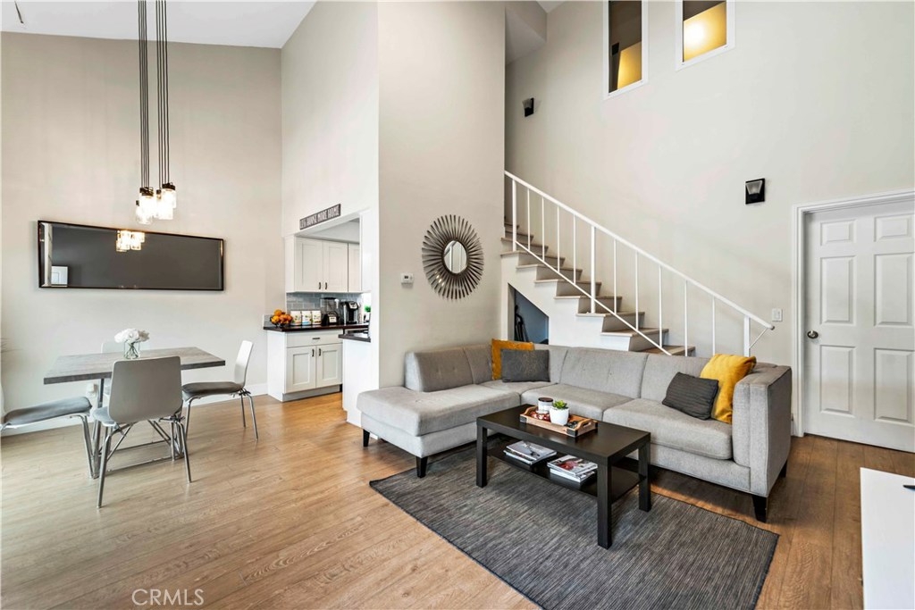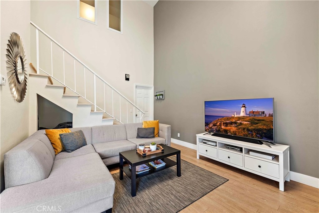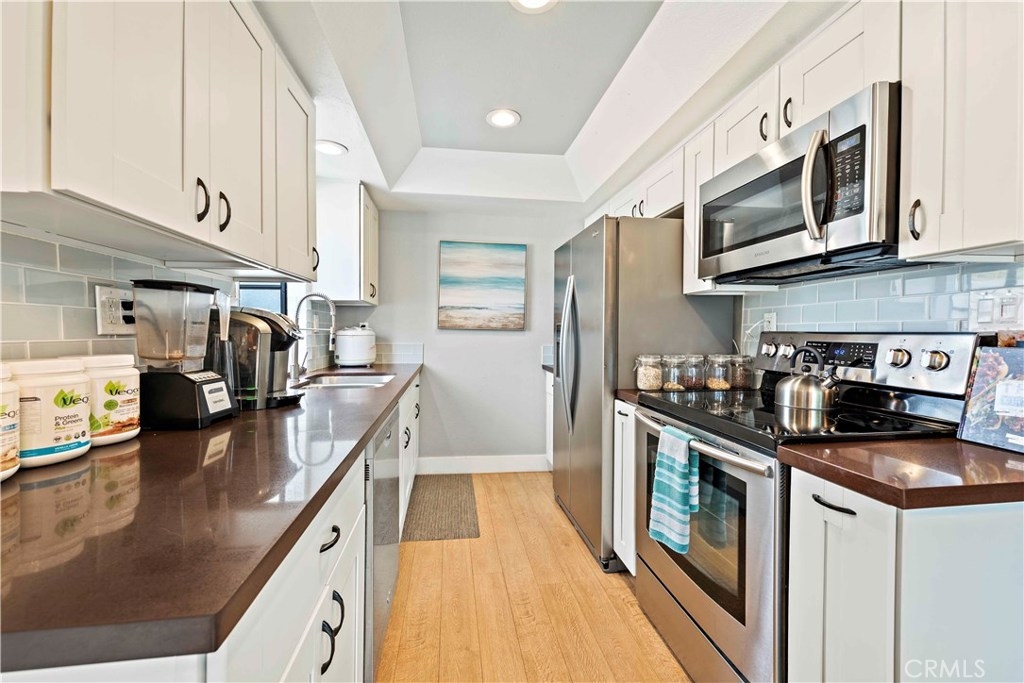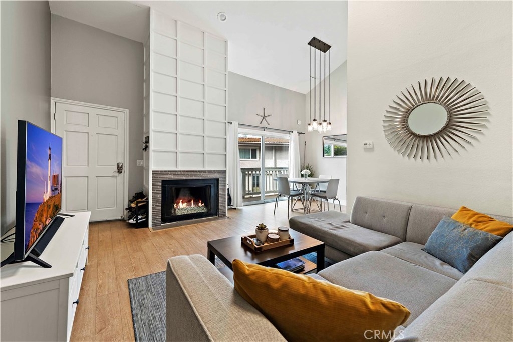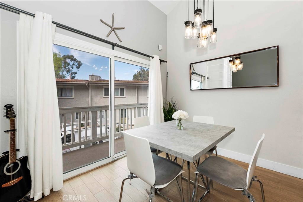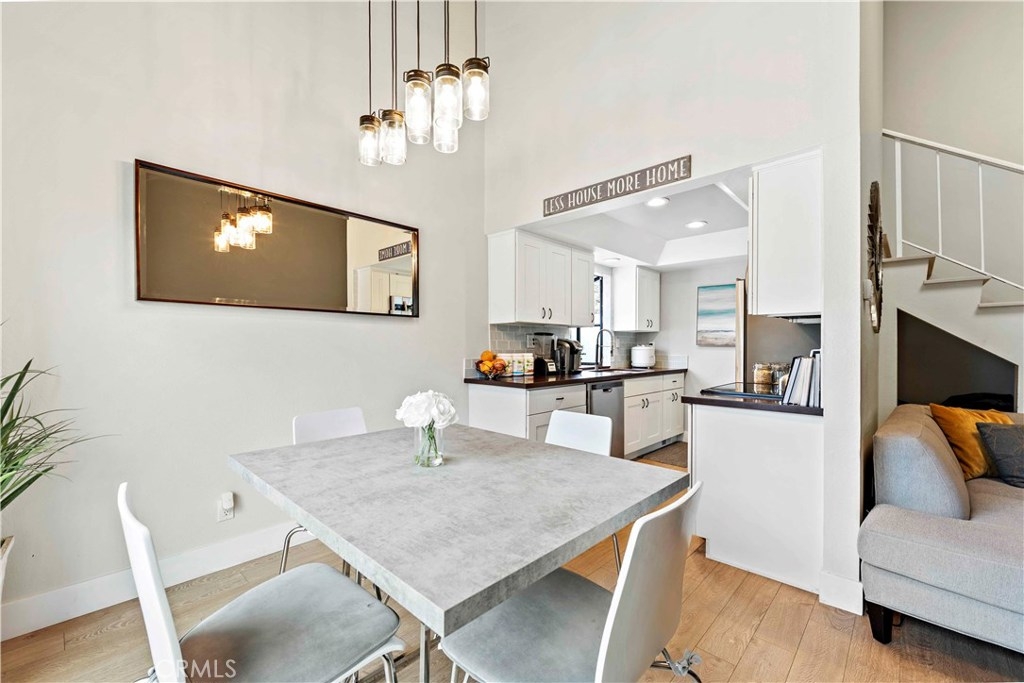 Welcome to this beautiful contemporary coastal home! This upgraded 2 bedroom, 2 bath captures the essence of life near the beach. Enter into the grand, two-story open living space, detailed with accent wall paint and cascading natural light. Cozy up by the custom tile and glass rock fireplace, which boasts a stunning detailed board and batten, floor-to-ceiling hearth. Enjoy days cooking in the upgraded kitchen: Quartz countertops, white shaker cabinets, custom bronze handle details, brick-patterned frosted glass subway tile, a romantic garden window with a view, stainless steel sink, electric range and updated stainless appliances. The inviting dining area presents large windows, and a beautifully upgraded pendant chandelier. Oak style laminate flooring, and tall shaker baseboards usher you to the downstairs bedroom. Walk-in closet, in-suite full bath with slate tile flooring. Make your way upstairs to find plenty of space for linens, and a full bath. The second bedroom is spacious with frosted privacy windows, has two mirrored closets and is the perfect place to unwind and relax. Within a few minutes, find yourself at the world-famous beaches Salt Creek and Strands. Nearby restaurants, fitness centers, shopping the Laguna Niguel Racket Club, Monarch Beach golf and more. Top highly-rated local schools and amenities. Don’t miss this one!