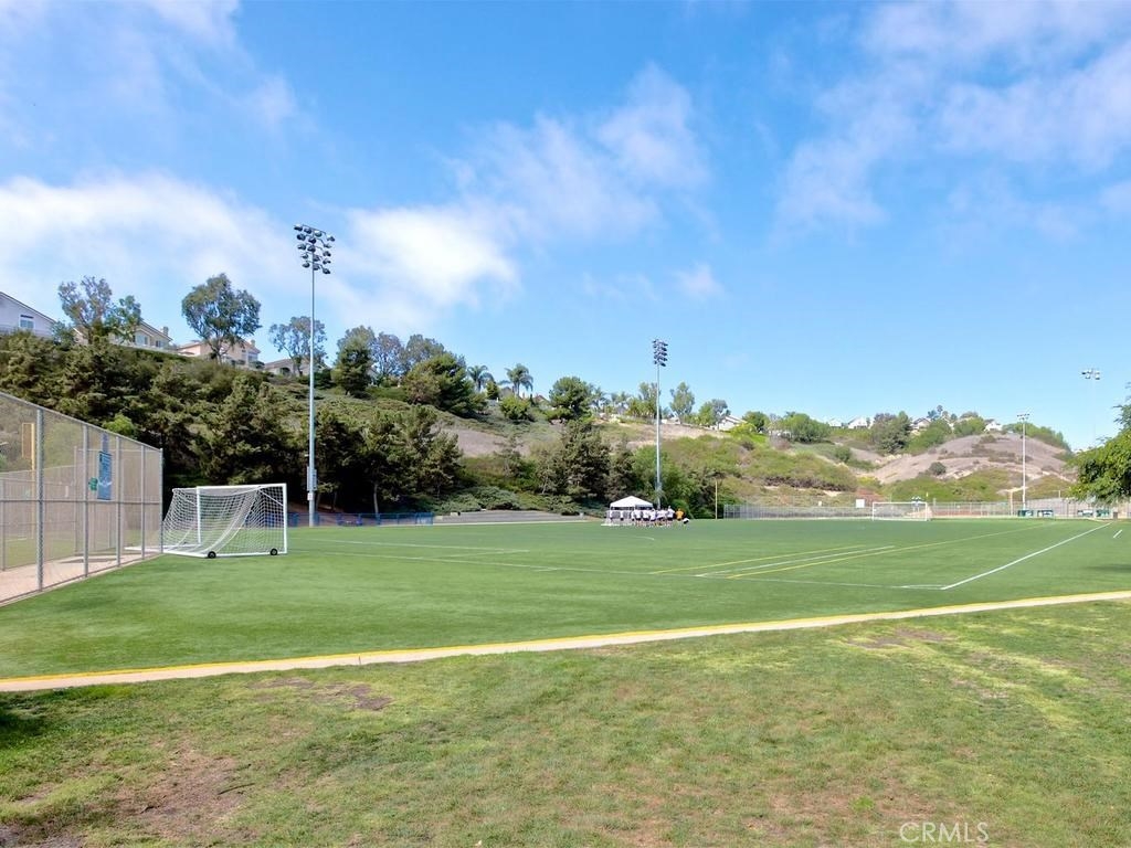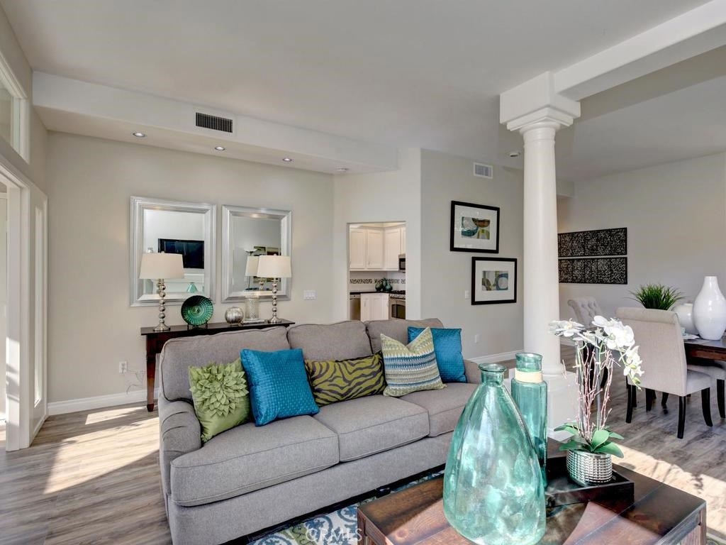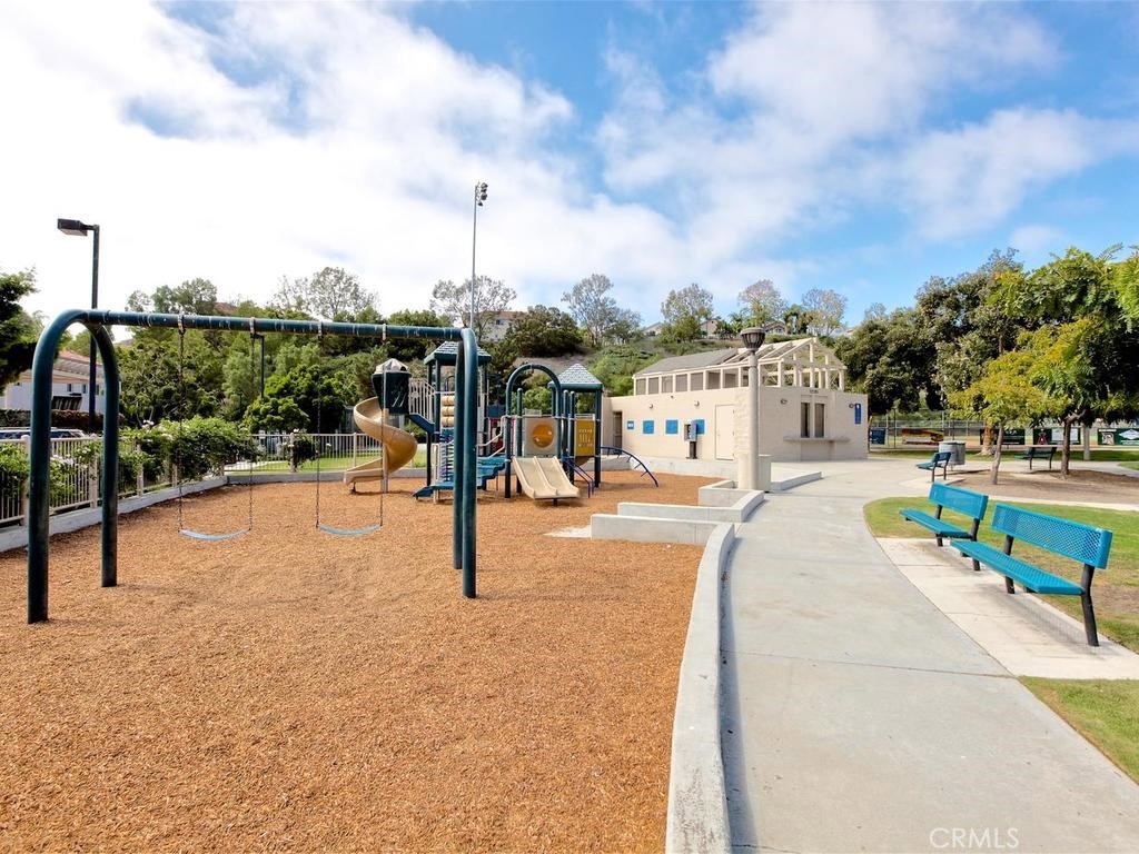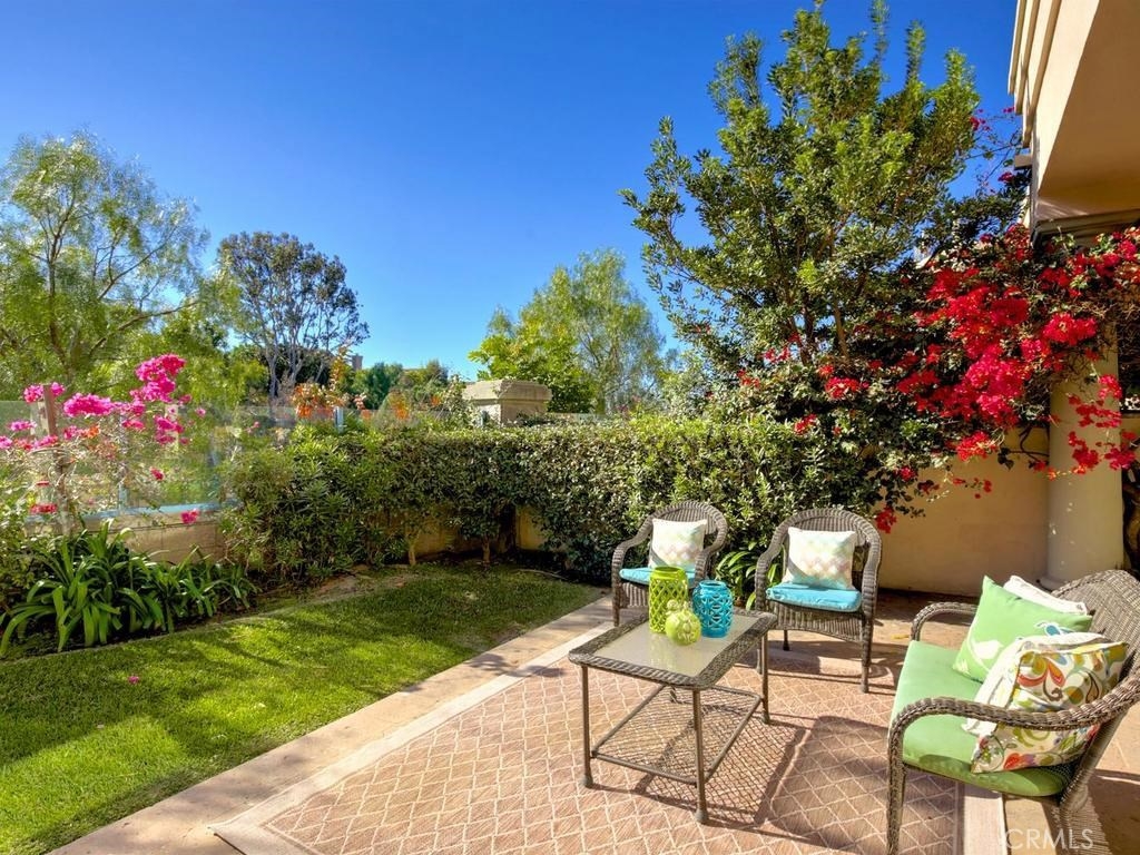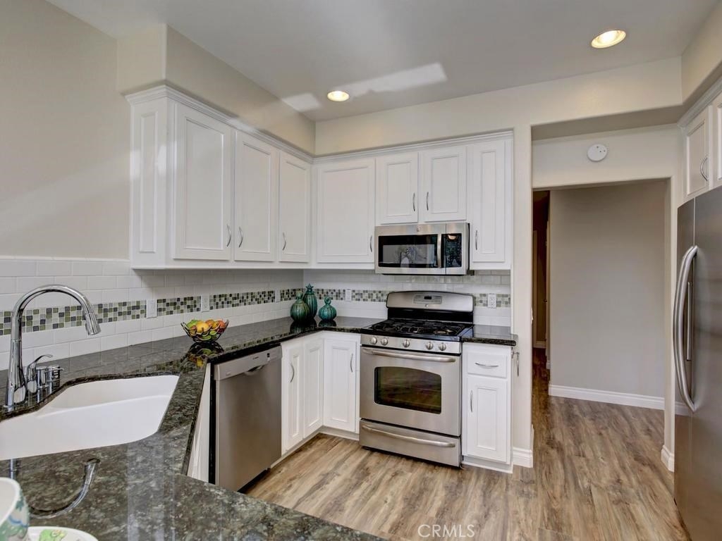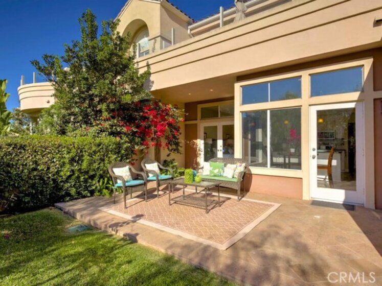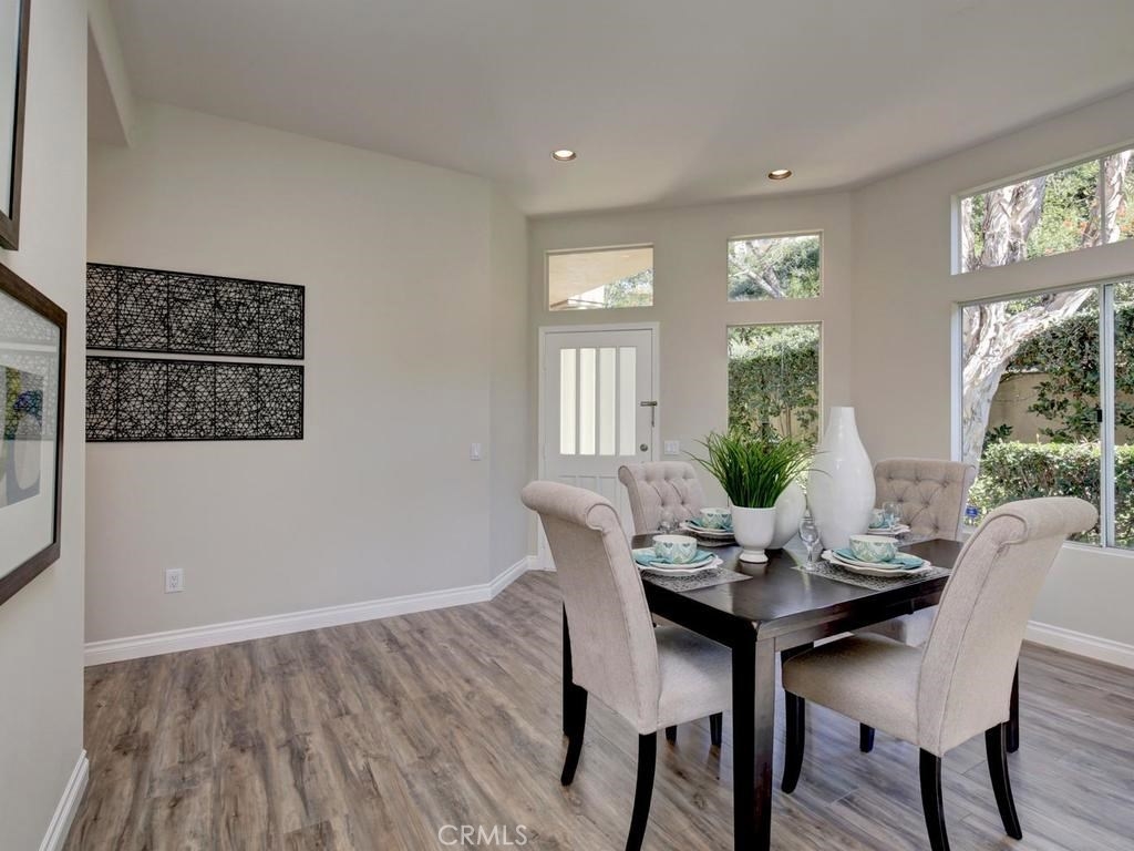 A showcase home, this updated Bear Brand Riviera ocean-close single-level is perfectly situated for a walkable lifestyle. As you approach the residence, you will notice fine architectural touches like stately columns, a plethora of windows, and the tasteful frosted half glass front door. The equally divine interior begins with a great room featuring new wood laminate flooring, recessed lighting, and a warm fireplace. The kitchen is appointed with granite countertops, a mosaic-tile backsplash, both recessed and delicate pendant lighting, wainscoting, and quality stainless steel appliances. Light floods into the home through the dining area that opens to the kitchen and the sun room/den, which can be closed off to convert into a third bedroom/guest room if needed. The en suite Master bedroom has a large walk-in closet, and direct access to the oversized backyard through French doors. The well-balanced floor plan includes a sunny second bedroom, inside laundry, and attached two-car garage. The spacious backyard is very private with no homes behind, a stamped concrete patio, and ample landscaped grass. Riviera at Bear Brand is a short walk to the community pool and spa, Bear Brand park, the well-regarded St. Anne school, and Ocean Ranch shopping center, which includes Trader Joe's, Cinepolis, Peet's coffee and more. A few miles from the Ritz, St. Regis Monarch Beach, Monarch Beach Golf Links, and Salt Creek/Strands beaches, this home is centrally located in paradise.