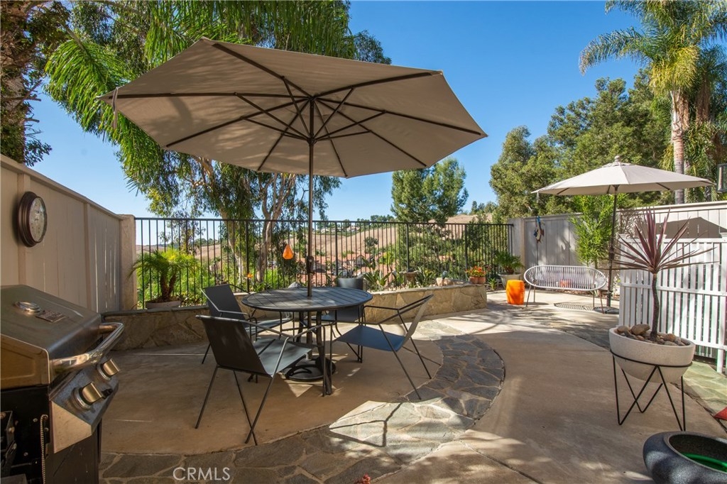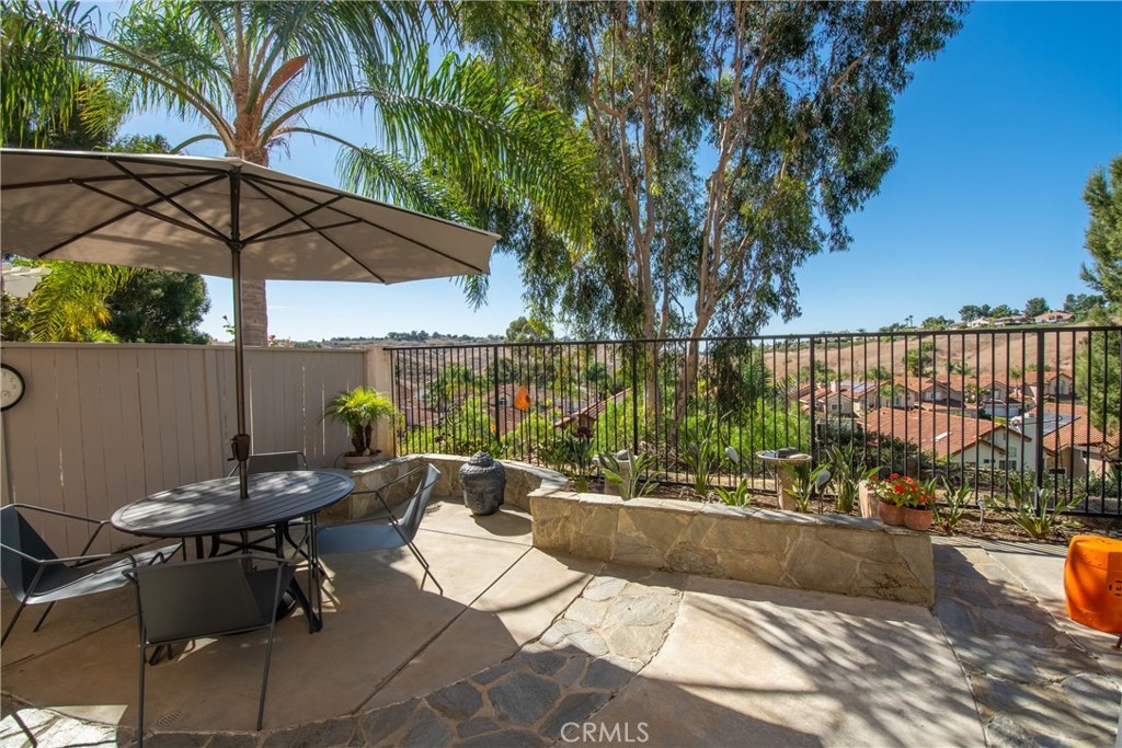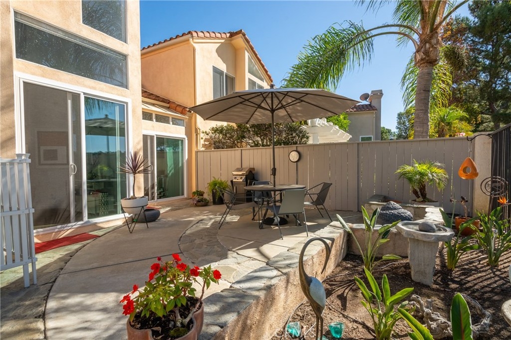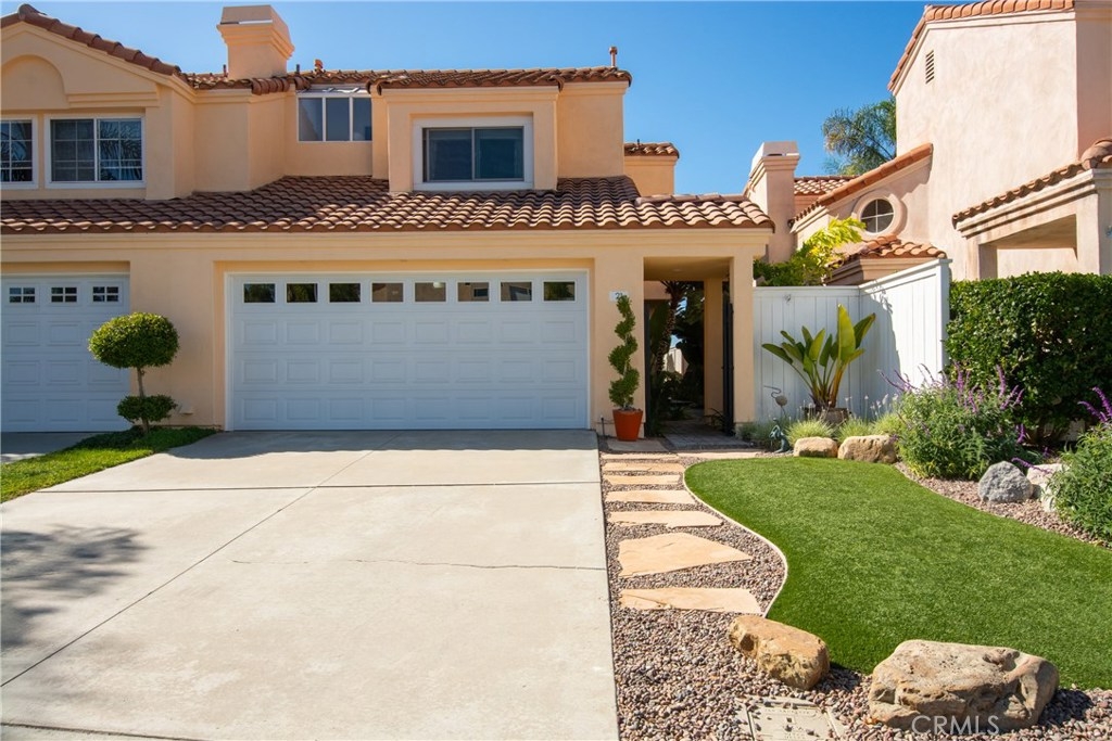 Absolutely incredible highly remodeled and redesigned Saltaire plan 3! All newer : PEX plumbing, energy efficient windows, A/C and heater, New roof and sky lights, and remodeled kitchen with open concept, custom cabinets and tons of natural light! Hunter Douglas custom window covering and remote control window shades. Custom designed glass front door and side window. Gorgeous remodeled bathroom and updated lighting! This sunset pano view home is the most desired floor plan in the tract due to the open feel and main floor bedroom not available in the other floor plans. Super quiet location with no major streets in the area as well as wonderful ocean breezes that come thru the Chapparosa Park canyon. As you walk up the secret garden surrounded by drought resistant landscaping and automatic sprinklers and drip system, newer pavers will lead you thru the custom iron gate, you will feel welcome and pampered. The gorgeous front door opens to the formal dining area with a huge living room just beyond. Cozy fireplace and gorgeous surrounding views along with the open concept makes this home so wonderful. Downstairs bedroom has a window in the courtyard and a full bath with shower downstairs. Also indoor laundry room just off the garage. Epoxy garage floors are a pleasure for the projects to take place. Upstairs the large master bedroom offers 2 closets with custom built-in features and high cathedral ceilings and big windows. Second bedroom up offers a private attached bath.