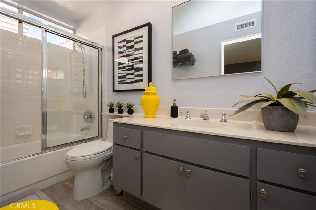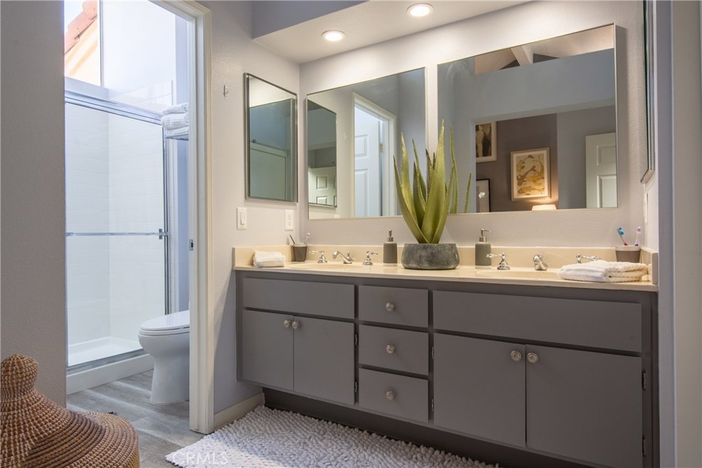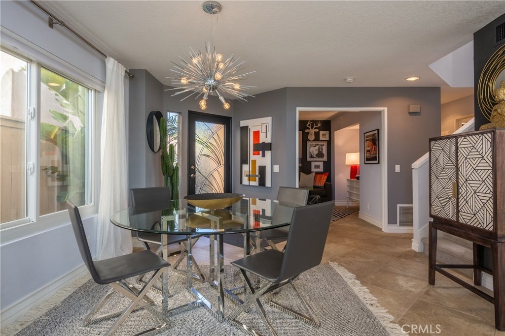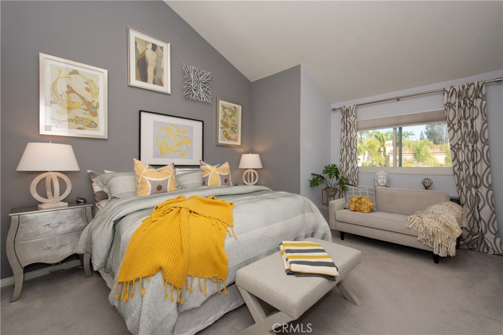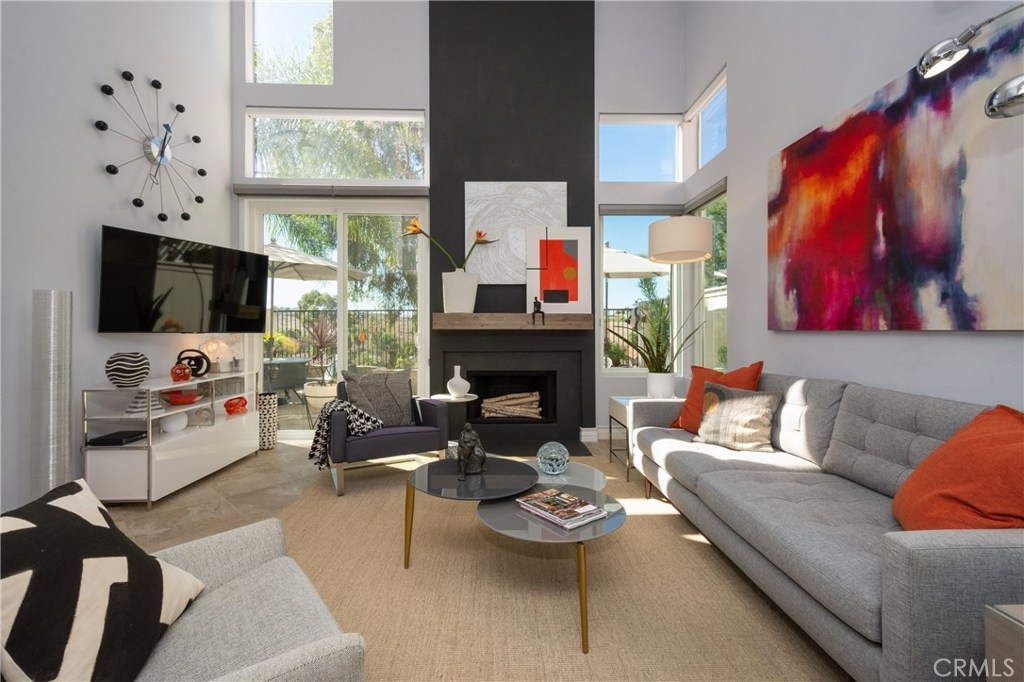 Absolutely incredible highly remodeled and redesigned Saltaire plan 3! All newer : PEX plumbing, energy efficient windows, A/C and heater, New roof and sky lights, and remodeled kitchen with open concept, custom cabinets and tons of natural light! Hunter Douglas custom window covering and remote control window shades. Custom designed glass front door and side window. Gorgeous remodeled bathroom and updated lighting! This sunset pano view home is the most desired floor plan in the tract due to the open feel and main floor bedroom not available in the other floor plans. Super quiet location with no major streets in the area as well as wonderful ocean breezes that come thru the Chapparosa Park canyon. As you walk up the secret garden surrounded by drought resistant landscaping and automatic sprinklers and drip system, newer pavers will lead you thru the custom iron gate, you will feel welcome and pampered. The gorgeous front door opens to the formal dining area with a huge living room just beyond. Cozy fireplace and gorgeous surrounding views along with the open concept makes this home so wonderful. Downstairs bedroom has a window in the courtyard and a full bath with shower downstairs. Also indoor laundry room just off the garage. Epoxy garage floors are a pleasure for the projects to take place. Upstairs the large master bedroom offers 2 closets with custom built-in features and high cathedral ceilings and big windows. Second bedroom up offers a private attached bath.