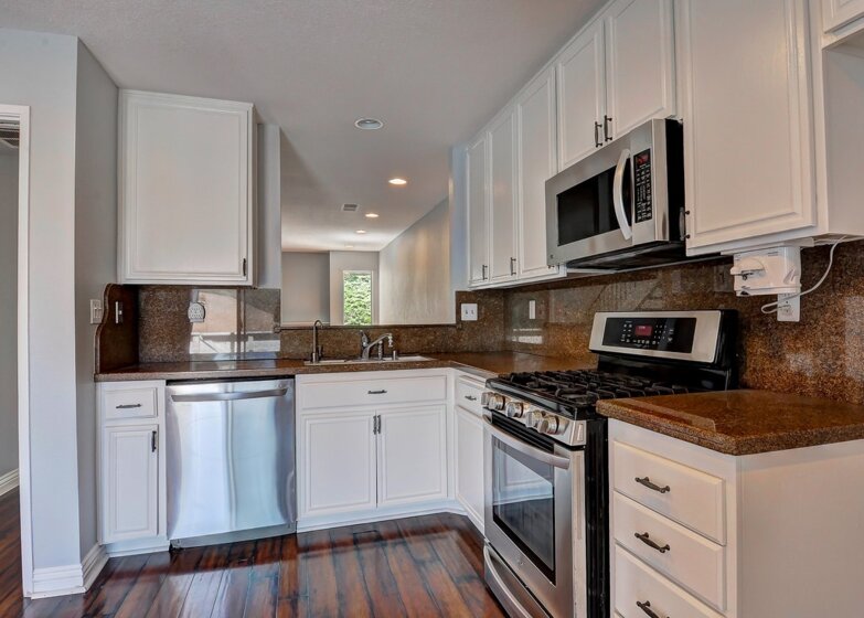 Darling light and bright condo with a view! Remodeled, updated and move-in ready! Sacious living space, with dining area and breakfast bar. Granite counters, updated bathrooms, hard flooring throughout, new carpet in bedrooms. One of just a few units in community with an attached garage. Community pool and spa. Greenbelts throughout neighborhood. Close to fwy and shopping.