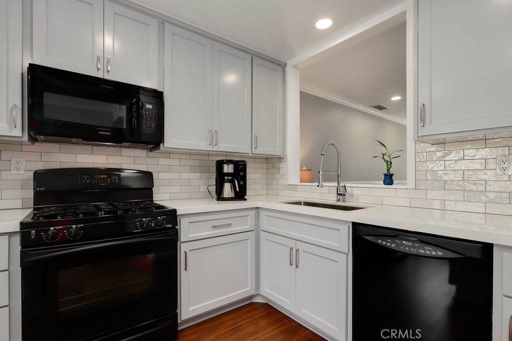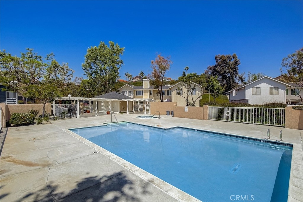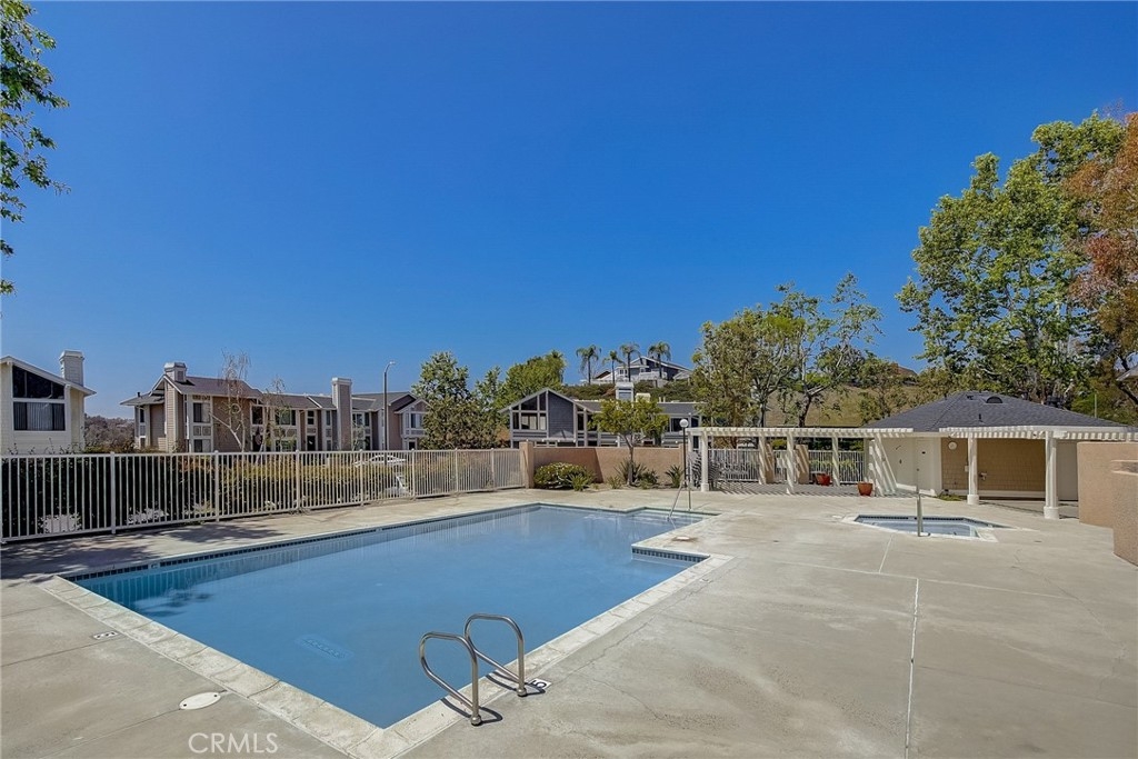 Move-in ready 2 bd/1.5 ba condo in the desirable Sparrow Hill community features a custom paint scheme, gorgeous crown molding & wainscoting, recessed lights, plantation shutters, all new laminate wood flooring, and the home has been fully re-piped in 2022! The living room offers lots of natural light and under stair storage. The kitchen has been remodeled with a newly added pantry, quartz countertops, subway tile backsplash, and a center island. The kitchen opens to the dining room with a beautiful custom fireplace. An updated half bathroom completes the 1st floor. Both of the bedrooms are on the 2nd floor and are generously sized, have carpet flooring and ceiling fans. The larger of the two bedrooms has a giant walk-in closet with built-in organizer and a private fireplace. There is a full-size laundry closet with included washer and dryer and an updated full-size bathroom which features new tiling and a brand new glass slider door. This home also has a 1-car detached garage with epoxy flooring, as well as a good-sized patio with views of the community greenbelt! Residents of this community, get to enjoy a swimming pool, spa, and tennis courts! Conveniently located near schools, shopping, dining, and not far from the 73 and the 5 fwy!
