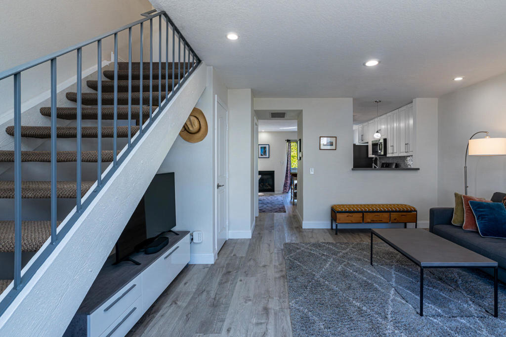 Welcome to this light and bright 2-bedroom, 1.5-bathroom townhome nestled in the peaceful and highly sought-after Sparrow Hill community. Recently upgraded within the last 4 years, this home offers modern finishes, a desirable floor plan, and a serene private patio backing to lush greenbelt -- perfect for indoor-outdoor California living.Inside, you'll find luxury vinyl plank flooring, newer recessed LED lighting, fresh interior paint, and a spacious living room with a cozy fireplace. The kitchen is equipped with updated cabinetry, quartz countertops, stainless steel appliances, and stylish backsplash, opening to bar-top seating and a generous dining area.Upstairs, both bedrooms are spacious and filled with natural light. The primary bedroom features a walk-in closet, fireplace, and scenic greenbelt views. Additional highlights include an indoor laundry area (washer/dryer included), newer roof, PEX re-piping, detached single-car garage, and an assigned parking space.Community amenities include a pool, spa, and beautifully maintained grounds. Located just minutes from shops, restaurants, beaches, and freeway access -- this townhome delivers comfort, convenience, and lifestyle in one of South OC's most charming communities.
