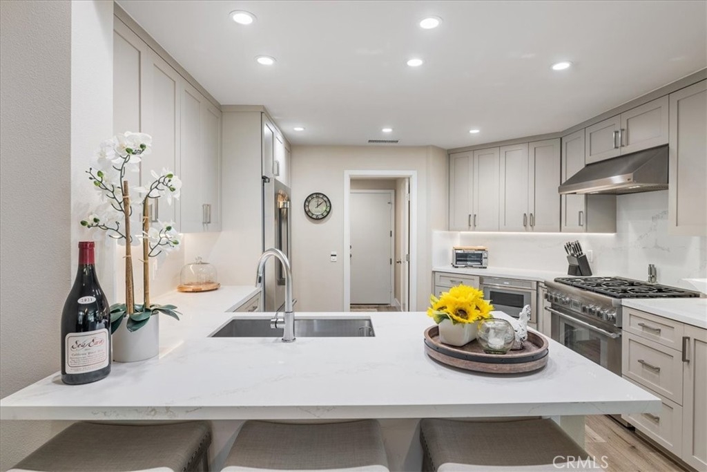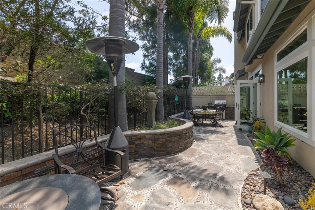 Located in South Laguna Niguel's prestigious Bear Brand area bordering Monarch Beach, this is a perfect primary residence or vacation home for those seeking paradise in South Orange County's beautiful coastal enclave. This elegant townhome looks, lives, and feels like a single-family detached home. This unbelievably stunning home has been completely remodeled and reimagined with the interior wall removed to create one large open concept space unlike most other homes in this neighborhood. With gorgeous, high-end upgrades and finishes, this property offers a rare opportunity to move into a turnkey designer masterpiece. Gracing the kitchen and bathroom countertops you'll find high-end Quartzite, which is also featured on the breathtaking fireplace. Step into this opulent home with high, two-story ceilings and large windows which showcase other beautiful features, such as fabulous art niches and modern touches throughout. The kitchen is equipped with Thermador appliances, beautiful custom cabinetry, and a fabulous laundry room with custom storage and Electrolux washer and dryer. This home has been re-piped with PEX piping and has newer dual paned windows. This fantastic floor plan boasts a large primary suite upstairs with a retreat (perfect for an office), two closets, one walk-in closet, and a sumptuous bathroom with large shower and separate soaking tub. There are two more bedrooms at the other end of the hall for superb privacy with a beautifully updated bathroom. The peaceful wraparound backyard features low maintenance landscaping, a built-in BBQ and fountain. Stoney Pointe is known for being well- maintained, quiet, private, peaceful, and close to everything! This home is within walking distance to Ocean Ranch Shopping Center, which offers the favorites: Trader Joe's, Peets, Cinepolis, Ralphs, Starbucks, Bottega Angelina, and many more shops and restaurants - it is the most convenient location! A beautiful walk or ride to Salt Creek Beach, Dana Point Harbor, and even Strands Beach Park, which are very close by. Ocean breezes are abundant here and there are stunning sunsets. A hidden gem in South Orange County! Rarely do these townhomes even come on the market since residents love them so much! The Shea Homes' architects created beautiful spaces in these homes that have stood the test of time and style. The location is excellent; it is close to the pool, spa and clubhouse and has ample guest parking. This truly is one of a kind and won't last!