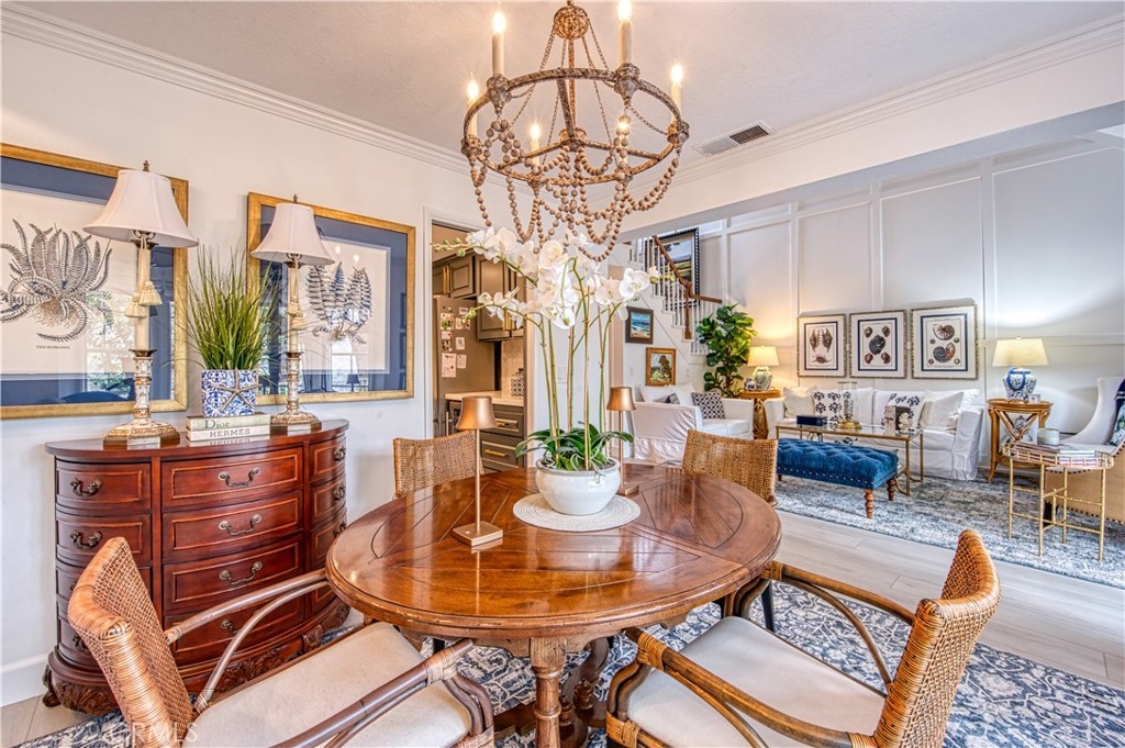 Discover the perfect blend of sophistication and comfort in this incredibly private dual-primay, three-bath townhome, offering nearly 2,000 sq. ft. of beautifully designed living space. Situated on one of the most coveted parcels in the exclusive Ville de Cerise gated community, this home boasts breathtaking canyon views that will captivate you from sunrise to sunset. A gorgeous, tranquil gated entry with Dutch door, leads you to an interior designer’s masterpiece, with meticulous attention to detail at every turn. The formal living room exudes timeless elegance, while the separate dining room and cozy family room off of the kitchen create ideal spaces for both entertaining and everyday living. Beautifully remodeled kitchen with shaker cabinetry, stainless steel appliances, fine finishes and lighting, and quartzite counter tops. Gorgeous custom built-ins, tremendous storage throughout, exquisite wainscoting, remote controlled window shades, and distinctive lighting elevate the ambiance throughout the home. The oversized primary suite is a true retreat, featuring stunning canyon views and a large en-suite bath, with two closets - one a walk-in. The generously sized secondary suite offers its own private bath and a walk-in closet. You will spend countless hours on the beautiful back patio surrounded by lush vegetation, which takes your breath away from the moment you step inside the home. Nestled in a low-density community of just 48 homes, residents enjoy access to a sparkling pool and spa, all within a tranquil and secure gated environment. Conveniently located in the heart of Laguna Niguel, this exceptional property is close to top-rated schools, fine dining, shopping, and world-class beaches. Don’t miss this rare opportunity to own a townhome that combines elegance, functionality, and unparalleled natural beauty.