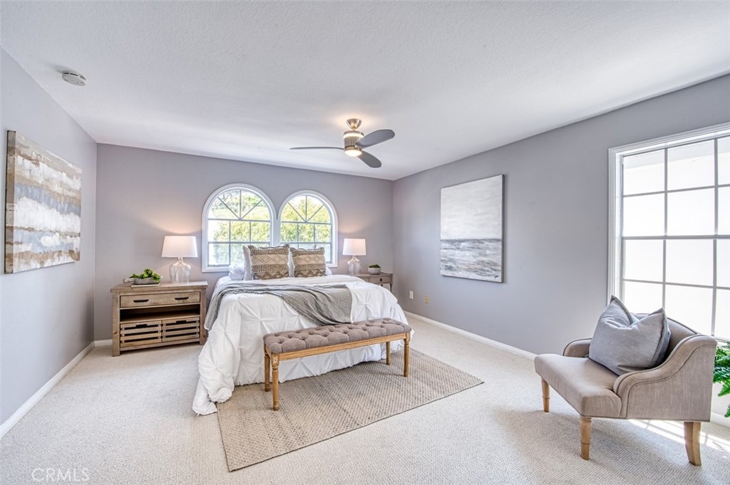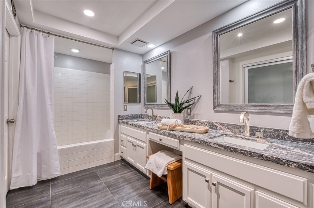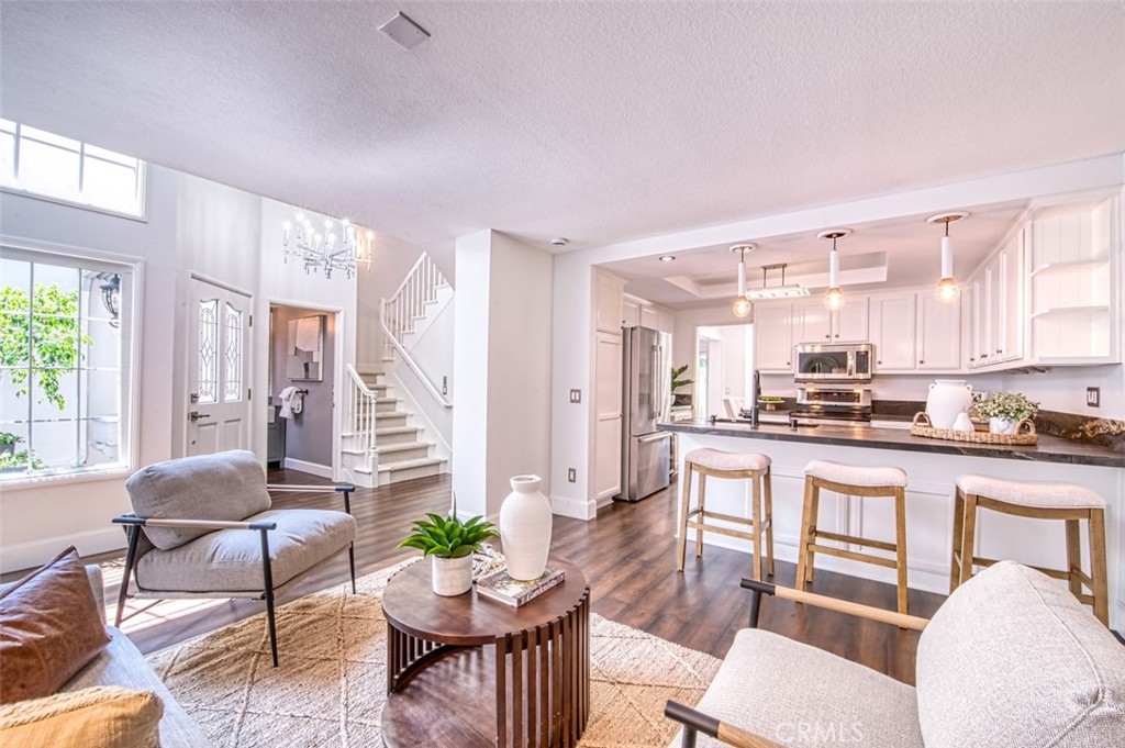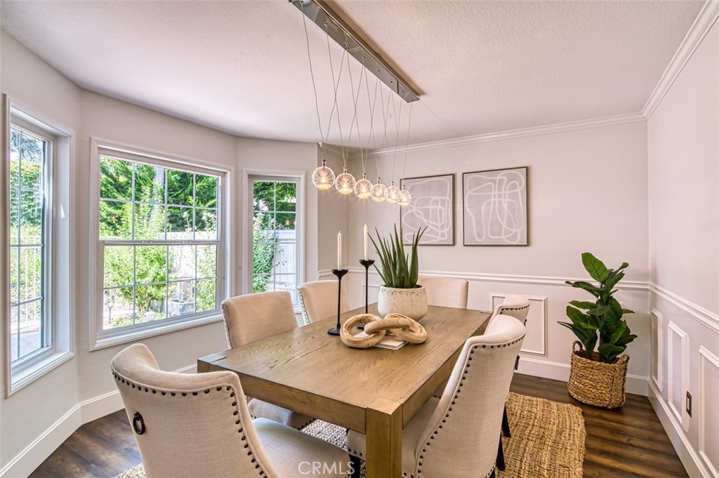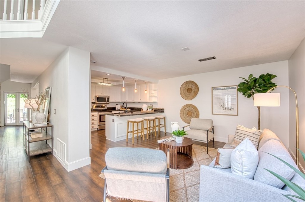 Gorgeous townhome with French-inspired architecture in a very desirable, gated community, and a terrific Laguna Niguel Location! Large living room with soaring ceilings, a fireplace, shiplap, wine storage and French doors leading to the beautiful, private patio. The spacious dining room overlooks the patio and offers plenty of space for your entertaining needs. The kitchen has been recently updated and offers leather-wrapped stone counters, a wine fridge, peninsula with bar seating and it opens to an additional family room and a downstairs bath. Upstairs, you will love the distance between the two primary suites and both bedrooms are exceptionally large with walk-in closets and both updated baths are very generous in size. Additioal interior attributes include rich wood flooring downstairs and brand new carpet upstairs, distinctive lighting, retractable door screens and natural light throughout. Spacious two-car, attached garage with brand new epoxy floor, built-in cabinetry, tool rack and a new sink. Large patio with beautiful greenery and mature vegetation, a sparkling water fountain and plenty of room for dining and lounging. Ville de Cerise is a quiet, low-density community of only 48 homes with pool and spa and the adjacent canyon offers hiking and biking trails. The HOA also recently replaced all of the roofs and re-piped each home. The location is outstanding with close proximity to the 5 freeway and 73 toll road, outstanding recreation, shopping, restaurants, movie theaters, Mission hospital and just minutes to Dana Point and Laguna Beach. This beautiful home and community will not disappoint!