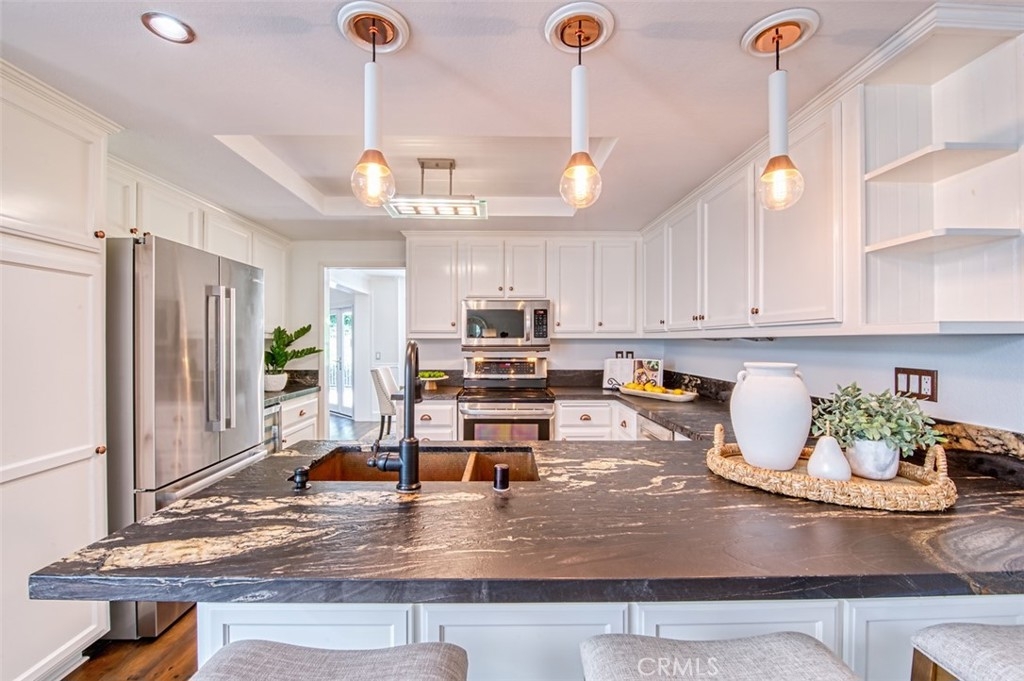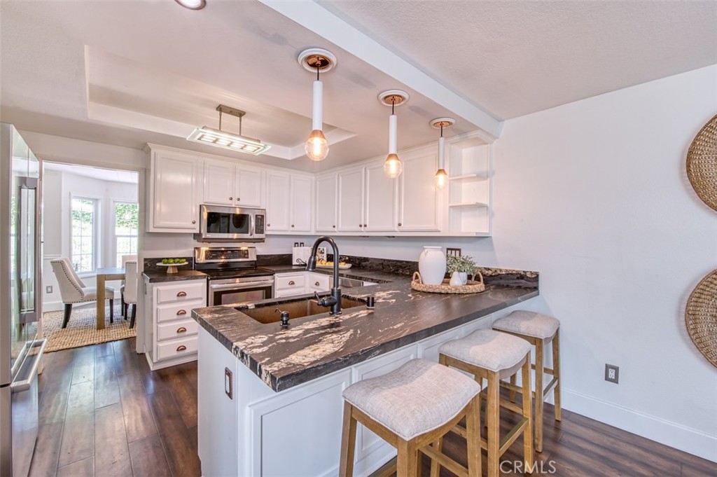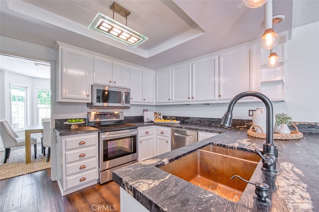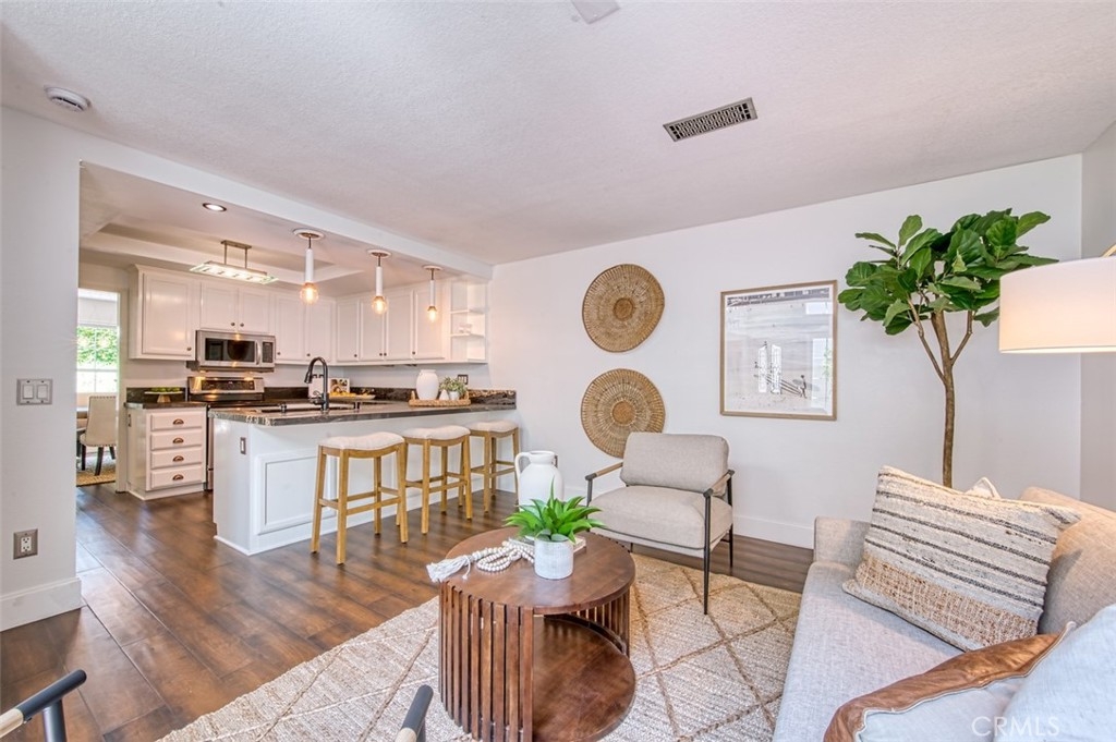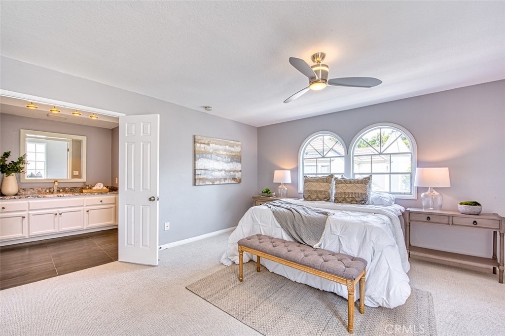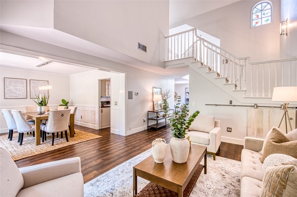 Gorgeous townhome with French-inspired architecture in a very desirable, gated community, and a terrific Laguna Niguel Location! Large living room with soaring ceilings, a fireplace, shiplap, wine storage and French doors leading to the beautiful, private patio. The spacious dining room overlooks the patio and offers plenty of space for your entertaining needs. The kitchen has been recently updated and offers leather-wrapped stone counters, a wine fridge, peninsula with bar seating and it opens to an additional family room and a downstairs bath. Upstairs, you will love the distance between the two primary suites and both bedrooms are exceptionally large with walk-in closets and both updated baths are very generous in size. Additioal interior attributes include rich wood flooring downstairs and brand new carpet upstairs, distinctive lighting, retractable door screens and natural light throughout. Spacious two-car, attached garage with brand new epoxy floor, built-in cabinetry, tool rack and a new sink. Large patio with beautiful greenery and mature vegetation, a sparkling water fountain and plenty of room for dining and lounging. Ville de Cerise is a quiet, low-density community of only 48 homes with pool and spa and the adjacent canyon offers hiking and biking trails. The HOA also recently replaced all of the roofs and re-piped each home. The location is outstanding with close proximity to the 5 freeway and 73 toll road, outstanding recreation, shopping, restaurants, movie theaters, Mission hospital and just minutes to Dana Point and Laguna Beach. This beautiful home and community will not disappoint!