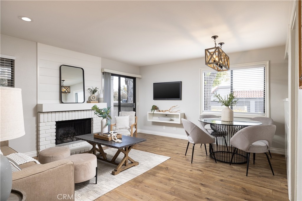 Welcome to your dream home in the heart of Laguna Niguel! This exquisite 3-bedroom, 2-bathroom, single-level condo is a rare gem, perfectly positioned on a desirable corner lot within the charming Villa Mira community. As you step inside, you'll be captivated by the open-concept floor plan bathed in natural light, exuding an ambiance of warmth and sophistication.The recent top-to-bottom remodel showcases impeccable attention to detail. The kitchen is a culinary delight, featuring crisp white cabinetry, gleaming white quartz countertops, a spacious walk-in pantry, and state-of-the-art stainless steel appliances, including a large farmhouse sink and a newer refrigerator. Adjacent to the kitchen, the expansive great room invites relaxation with its washed brick fireplace, recessed lighting, and a cozy dining area illuminated by a rustic chandelier. The master suite is a tranquil retreat, offering direct access to the generous patio. The en-suite bathroom has been thoughtfully updated with a brand-new double sink vanity topped with quartz counters and new mirrored wardrobe doors. Two additional well-sized bedrooms provide versatile space for family, guests, or a home office. One of these rooms opens to a second, more intimate patio that houses the convenient laundry closet, complete with an included washer and dryer. Throughout the home, luxury vinyl flooring adds a touch of elegance, complemented by new window blinds and modern fixtures. Practical upgrades include all-new toilets, a one-car garage, and ample open parking. The Villa Mira community has recently benefited from significant enhancements, such as PEX piping, fresh exterior paint, and new roofing. Residents enjoy access to two sparkling pools, inviting spas, and a welcoming clubhouse. Beyond the comforts of home, Villa Mira's prime location offers unparalleled convenience. You're just steps away from a variety of shopping and dining options, entertainment venues, and scenic hiking and biking trails. Plus, the pristine beaches of Southern California are only a 10-minute drive away, allowing you to effortlessly embrace the coastal lifestyle. Don't miss this opportunity to experience the perfect blend of modern luxury and community charm. Schedule your private tour today and envision yourself living in this exceptional Laguna Niguel residence.