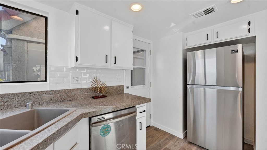 Beautifully updated single-level 3-bedroom condo in the highly desirable Villa Mira community of Laguna Niguel. This bright end-unit offers vaulted ceilings, an open-concept living area, and abundant natural light throughout. Enjoy a spacious private balcony overlooking the greenbelt — perfect for relaxing or entertaining. The home features modern updates, including LED recessed lighting, fresh paint, contemporary trim, and durable water-resistant vinyl flooring. Recently re-piped, offering long-term peace of mind. The well-designed kitchen opens to the dining area, while the large primary suite includes vaulted ceilings and ample closet space. Residents enjoy access to resort-style amenities, including two pools, spas, and beautifully maintained grounds, with no Mello-Roos and low taxes. Conveniently located near shops, restaurants, outdoor trails, and major freeways, with top-rated schools nearby. A rare combination of privacy, upgrades, and location — this home is ideal for first-time buyers, downsizers, or investors looking for strong rental potential.