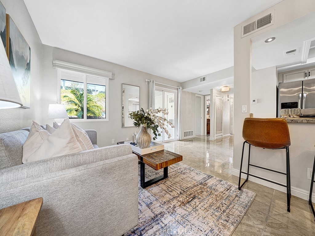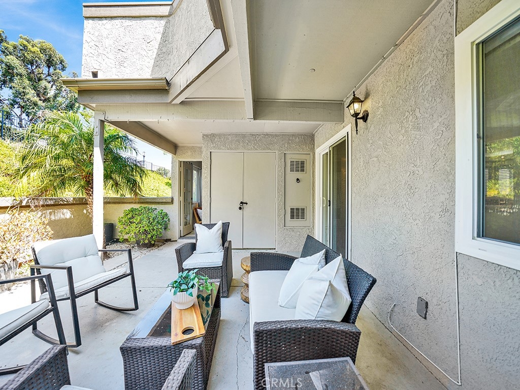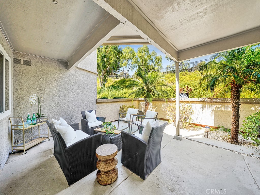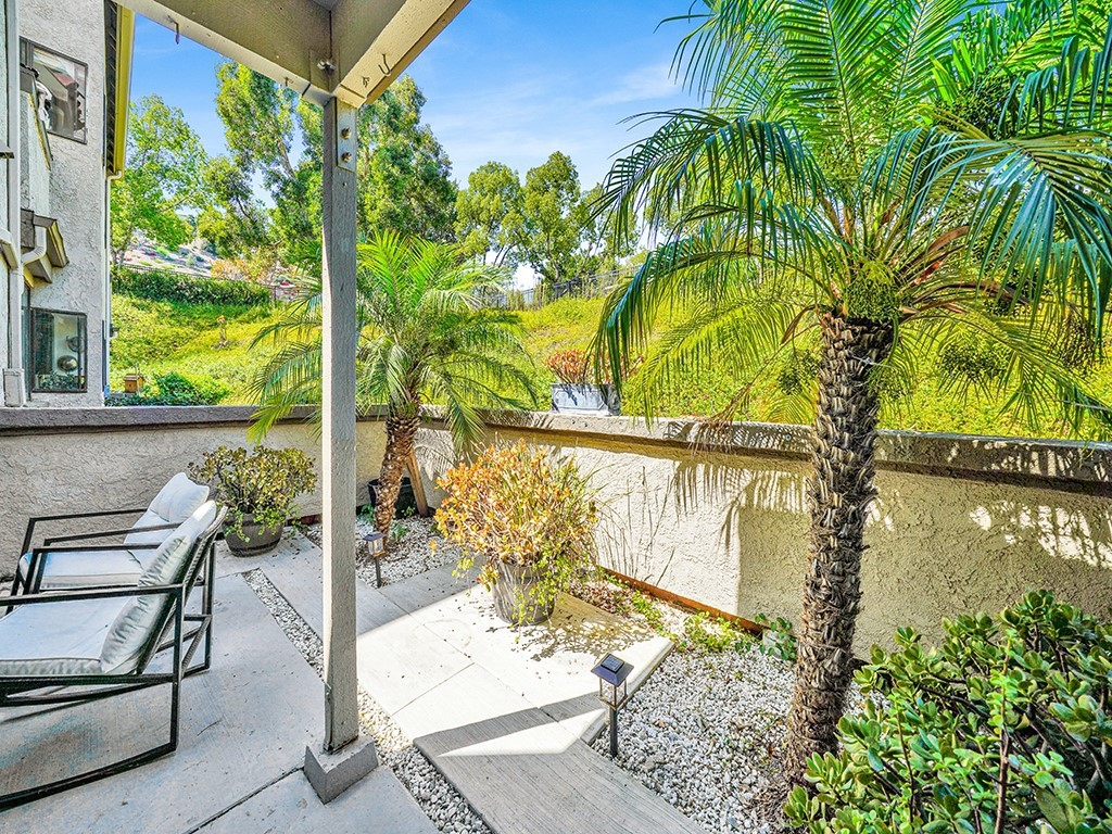 Welcome to this charming 2-bedroom, 1-bath ground-level condo in the serene Villa Mira community. With nearly 800 sq ft of thoughtfully designed living space, this home offers an open-concept layout, central A/C and heat, in-unit laundry, and a private patio—perfect for relaxing or entertaining. The patio offers total privacy from away from other units. The patio can be accessed from the main living area and also from the secondary bedroom. Enjoy access to community amenities including a pool and spa, all just minutes from shopping, dining, parks, and the beach. Ideally located near Cabot Road and Paseo del Colinas, with convenient freeway access.