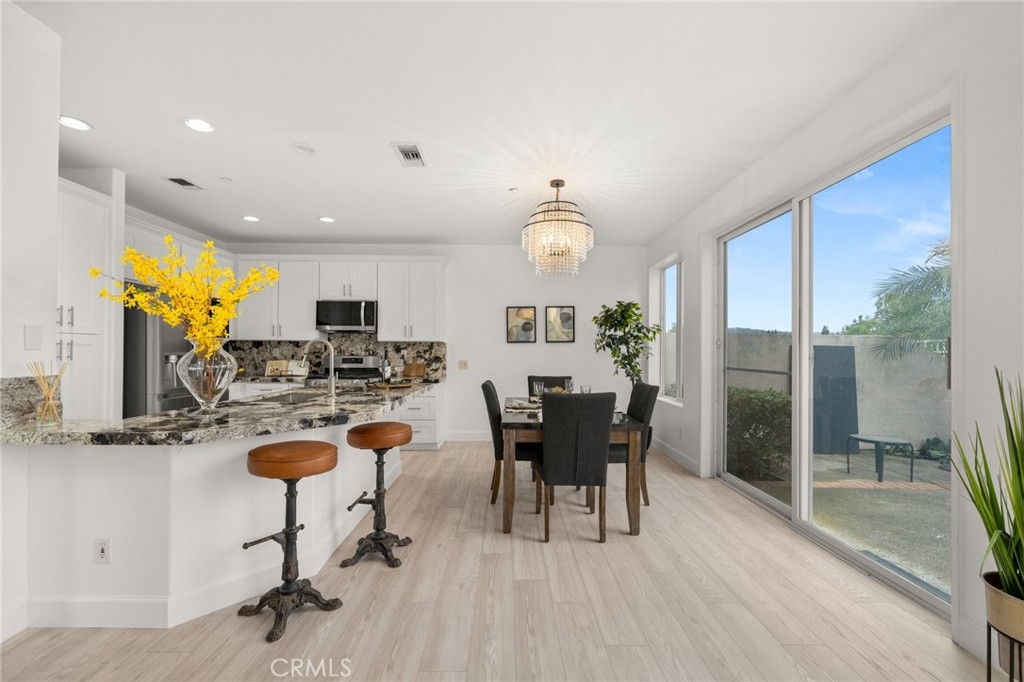 Welcome to 27321 Sahara Place, a beautifully remodeled end-unit home with private views in the desirable Village Niguel Gardens community. This light-filled home features an open floor plan with soaring high ceilings and updated flooring throughout. Enjoy breathtaking hillside and sunset views with no rear neighbors for ultimate privacy. The chef’s kitchen boasts brand-new stainless steel appliances, custom cabinetry, and luxurious quartzite Italian countertops—an elegant and rare natural stone. Both bathrooms have been thoughtfully updated with designer finishes. A brand new AC and Furnace was installed, but you may not need it as there is a perfect ocean cross breeze that fills the air of the home. The home has a NEMA outlet for EV or Hybrid car charging. Just steps from the community pool, spa, and an exclusive private park for this community which includes a dog park, tennis/pickleball courts, a baseball field and picnic areas. The location is perfect offering quick access to the 73 and 5 freeways, this turnkey property blends luxury, comfort, and convenience in the heart of Laguna Niguel. This floor plan is the most unique in this gated community, come check it out!