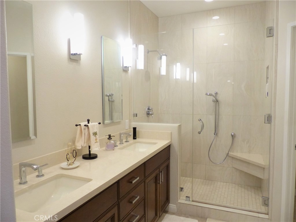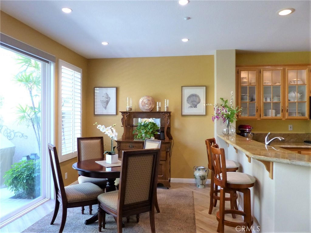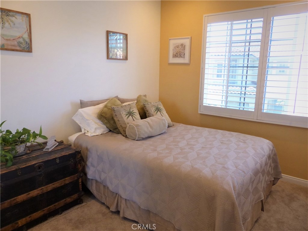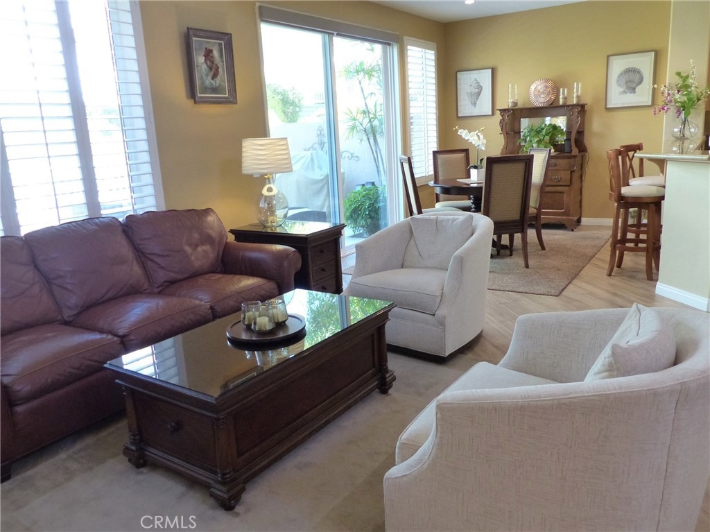 This highly upgraded remodeled condo in the beautiful private gated grounds of Village Niguel Gardens has a significant amount of decorator level amenities, over 60K. This model offers a two-story 20’ high cathedral ceiling open floor plan with lots of natural light. The upper level has 2 bedrooms plus open loft with plush new carpeting, new baseboards and paint, and new custom shutter window treatments. The master bath is fully remodeled with new tile flooring, custom cabinets, Italian tile walk-in shower, dual sinks, and quartz countertop. The guest bath shows new tile flooring custom cabinets, and a walk-in shower. The open loft area can be easily converted to a third bedroom, if preferred, and has newly installed custom shutters. The main level includes stunning new tile wood flooring, motorized roller shades, and a modern kitchen with granite countertops and breakfast bar. The entire home has been retrofitted with recessed dimmable LED lighting. Access to the patio includes a new glass sliding door and the re-faced patio area is protected with a motorized exterior retractable awning providing an extremely comfortable space for outdoor living. The infrastructure has “above slab” (PEX) plumbing, water softener, garage racking, and built-in storage cabinets, under stairs storage, and retractable screen entry doors. The community amenities include two pools and spas, a close walk to community owned baseball field, park, and tennis courts. Low Tax, Low HOA, No Mello Roos.