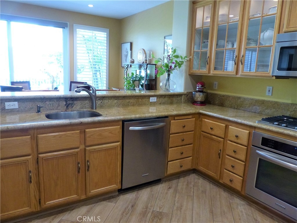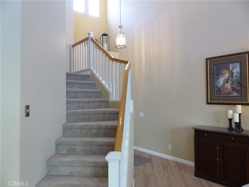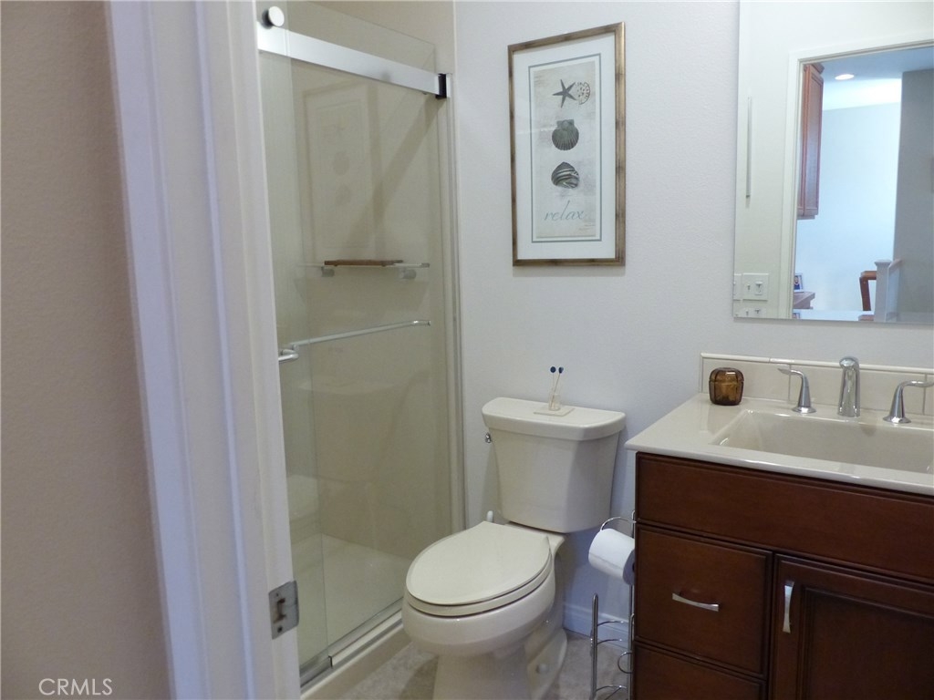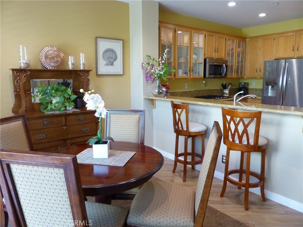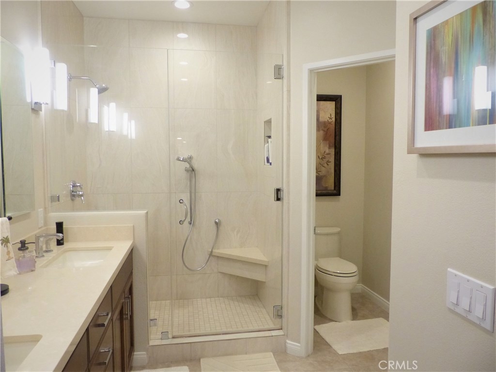 This highly upgraded remodeled condo in the beautiful private gated grounds of Village Niguel Gardens has a significant amount of decorator level amenities, over 60K. This model offers a two-story 20’ high cathedral ceiling open floor plan with lots of natural light. The upper level has 2 bedrooms plus open loft with plush new carpeting, new baseboards and paint, and new custom shutter window treatments. The master bath is fully remodeled with new tile flooring, custom cabinets, Italian tile walk-in shower, dual sinks, and quartz countertop. The guest bath shows new tile flooring custom cabinets, and a walk-in shower. The open loft area can be easily converted to a third bedroom, if preferred, and has newly installed custom shutters. The main level includes stunning new tile wood flooring, motorized roller shades, and a modern kitchen with granite countertops and breakfast bar. The entire home has been retrofitted with recessed dimmable LED lighting. Access to the patio includes a new glass sliding door and the re-faced patio area is protected with a motorized exterior retractable awning providing an extremely comfortable space for outdoor living. The infrastructure has “above slab” (PEX) plumbing, water softener, garage racking, and built-in storage cabinets, under stairs storage, and retractable screen entry doors. The community amenities include two pools and spas, a close walk to community owned baseball field, park, and tennis courts. Low Tax, Low HOA, No Mello Roos.