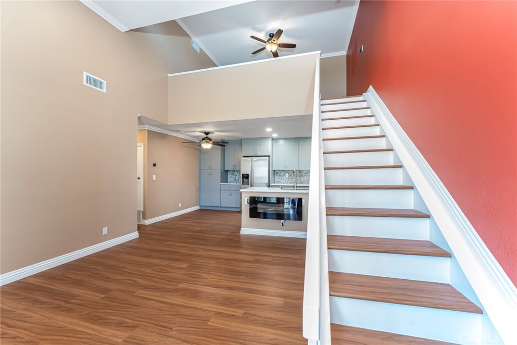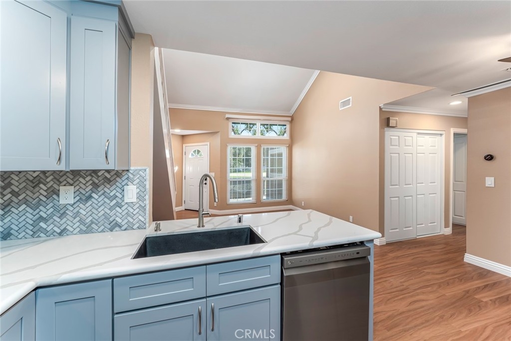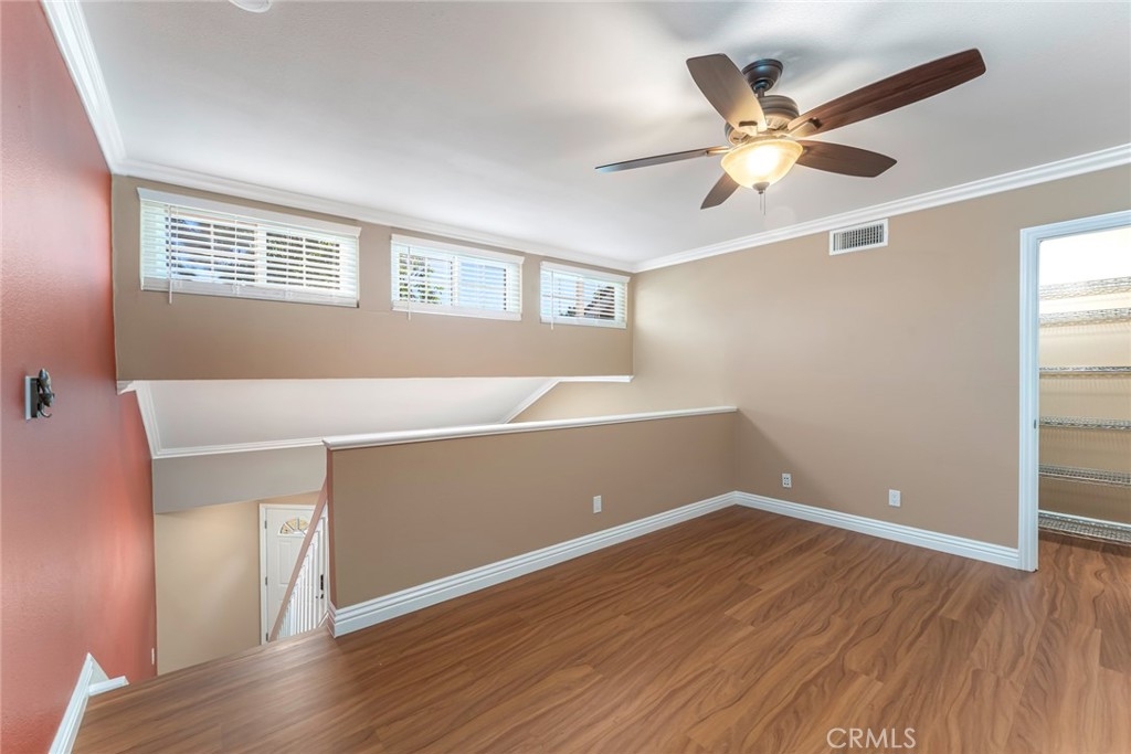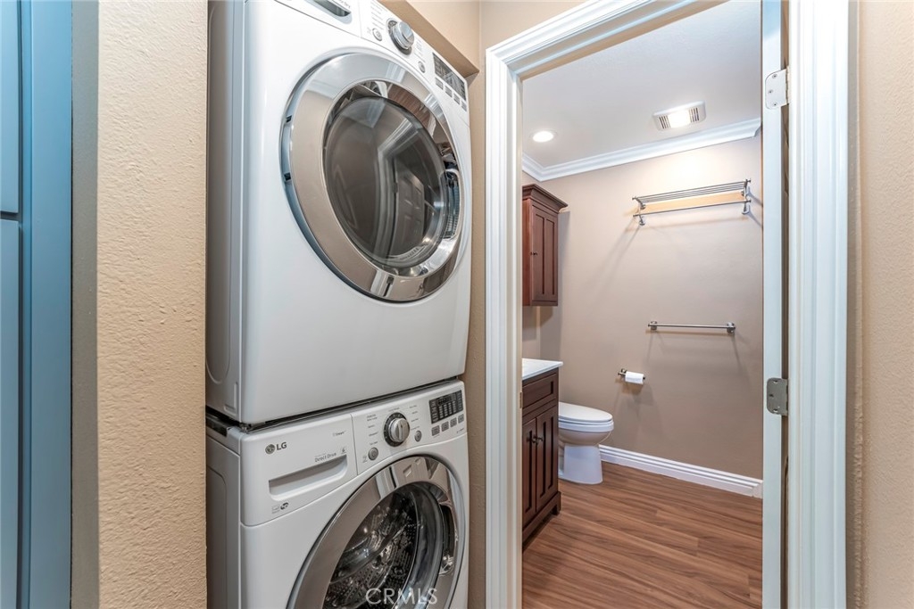 Welcome to your completely remodeled dream retreat in the heart of Laguna Niguel. Nestled within a gated community, this exquisite one-bedroom, one-bathroom home, featuring an expansive loft upstairs, offers 830 square feet of bright and open living space. One of the few units to boast a breathtaking panoramic park view, this home invites you to enjoy serene vistas and gorgeous sunsets from your spacious private balcony, complete with a full outdoor dining set. As you enter the home, you are greeted by the luxury of high ceilings and new vinyl flooring throughout the entire space, complemented by LED recessed lighting. Large upgraded dual-pane windows allow natural light to flourish throughout the residence, enhancing the open and airy feel. The kitchen is a chef's dream, featuring brand-new quartz countertops, a custom backsplash, upscale custom cabinets, and stainless steel appliances, with ample storage for all your culinary needs. The primary bedroom is spacious, remodeled, and equipped with two large closets, providing ample storage space and a touch of modern elegance. The primary bathroom has been modernized with new cabinets, fixtures, and a bath/shower combo, offering a spa-like retreat. Make your way upstairs through a tastefully designed staircase to land at the spacious loft that could be your ideal office or guest space, featuring a closet, ceiling fan, and a modern accent wall. This home has undergone a complete PEX repipe and is equipped with a multi-speed furnace and a newer water heater, ensuring comfort and efficiency. Enjoy the convenience of an in-unit stacked washer and dryer for all your laundry needs. Additional features include a detached one-car garage with overhead storage racks, providing even more space for your belongings. Community amenities include a pool, hot tub, tennis courts, dog parks, and a center, all part of the HOA. With convenient access to shopping, dining, and the toll road, this home serves as both a serene escape and a gateway to modern living.