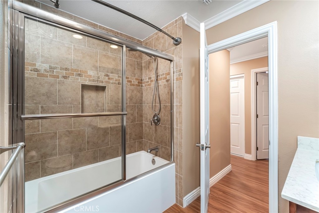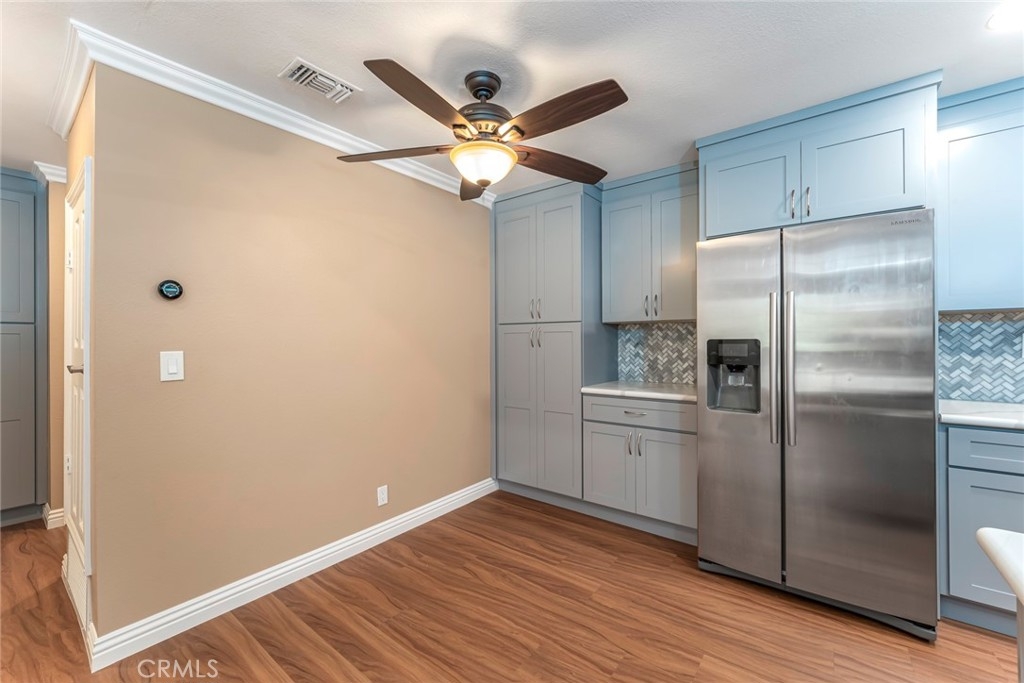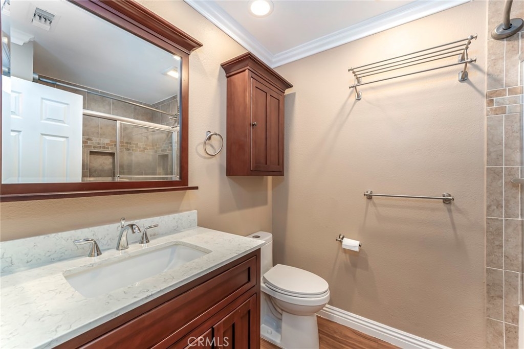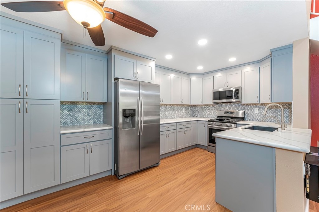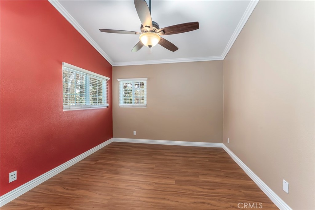 Welcome to your completely remodeled dream retreat in the heart of Laguna Niguel. Nestled within a gated community, this exquisite one-bedroom, one-bathroom home, featuring an expansive loft upstairs, offers 830 square feet of bright and open living space. One of the few units to boast a breathtaking panoramic park view, this home invites you to enjoy serene vistas and gorgeous sunsets from your spacious private balcony, complete with a full outdoor dining set. As you enter the home, you are greeted by the luxury of high ceilings and new vinyl flooring throughout the entire space, complemented by LED recessed lighting. Large upgraded dual-pane windows allow natural light to flourish throughout the residence, enhancing the open and airy feel. The kitchen is a chef's dream, featuring brand-new quartz countertops, a custom backsplash, upscale custom cabinets, and stainless steel appliances, with ample storage for all your culinary needs. The primary bedroom is spacious, remodeled, and equipped with two large closets, providing ample storage space and a touch of modern elegance. The primary bathroom has been modernized with new cabinets, fixtures, and a bath/shower combo, offering a spa-like retreat. Make your way upstairs through a tastefully designed staircase to land at the spacious loft that could be your ideal office or guest space, featuring a closet, ceiling fan, and a modern accent wall. This home has undergone a complete PEX repipe and is equipped with a multi-speed furnace and a newer water heater, ensuring comfort and efficiency. Enjoy the convenience of an in-unit stacked washer and dryer for all your laundry needs. Additional features include a detached one-car garage with overhead storage racks, providing even more space for your belongings. Community amenities include a pool, hot tub, tennis courts, dog parks, and a center, all part of the HOA. With convenient access to shopping, dining, and the toll road, this home serves as both a serene escape and a gateway to modern living.