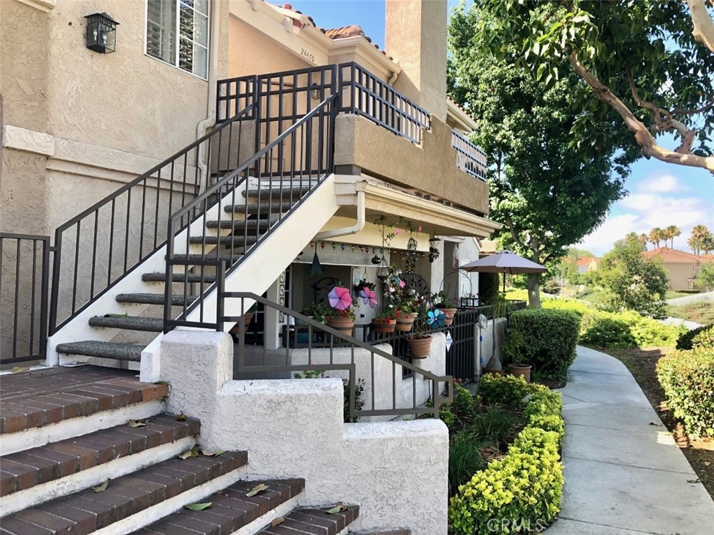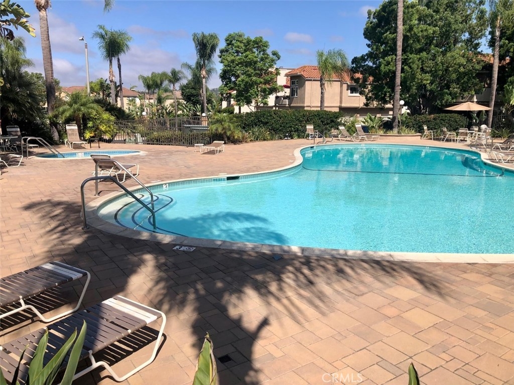 Wonderful location at the edge of the tract with a panoramic view overlooking the park. This upper level unit has vaulted ceilings and a wide open floor plan. There is one spacious bedroom and bathroom on the first level, and a cozy loft that is the perfect space for a home office or guest room. Centrally located gated community with a pool and spa. The kitchen features tile flooring, counters and back splash and the living room features warm wood flooring and plantation shutters. All is in nice move-in condition. The master bedroom features vaulted ceilings and two closets, one of them is a walk in closet. The property also has a detached one car garage space. This location is the perfect spot to enjoy the view and the peaceful breezes of Laguna Niguel.