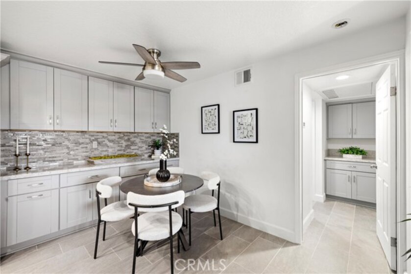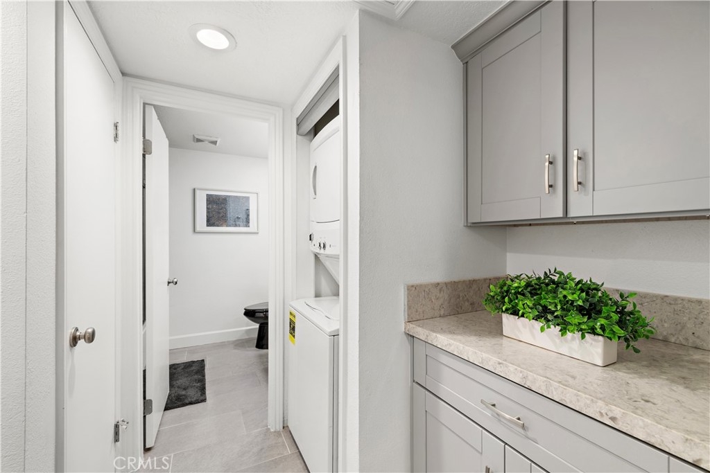 Located in the Village Niguel Terrace II community, this ground-level 1-bedroom, 1-bath condo offers true single-level living with a fully remodeled interior that feels clean, modern, and move-in ready. The unit has been extensively updated with newer flooring throughout, fresh interior paint, and a redesigned kitchen featuring newer cabinetry, quartz countertops, updated hardware, and stainless steel appliances, with an unusually generous amount of cabinet and counter space for a one-bedroom, including full-height upper cabinets and extended storage along the dining wall. The kitchen opens directly to the living area, creating an efficient, functional layout. An interior door separates the living space from the bedroom and bathroom hallway, providing a level of privacy that is uncommon for this floor plan. The bathroom has been updated with a quartz vanity, newer fixtures, and a walk-in shower. A full-size washer and dryer are conveniently located in a dedicated interior laundry closet. Additional improvements include a newer water heater and a recently serviced furnace and air conditioning system. The community itself has undergone significant capital improvements, including freshly painted exterior buildings, a full repipe with PEX plumbing, and newer roofs completed within the past few years. Centrally located near Interstate 5 and the 73 freeway, the home offers easy access to Aliso and Wood Canyons Wilderness Park, Laguna Niguel Regional Park, and everyday conveniences including Costco, Sprouts, Pavillions, Life Time Fitness, shopping, dining, and trails. This is a low-maintenance opportunity in one of Laguna Niguel’s most convenient and well-connected communities.