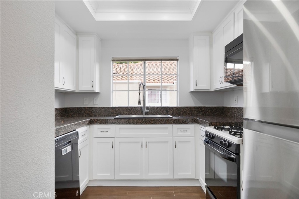 Terrific opportunity to own this 2-bedroom, 2-bathroom carriage unit (no units above or below) in the sought after, gated community of Village Niguel Terrace II. Enjoy a spacious private patio right outside your front door. Enter into a light, bright, freshly painted and updated interior! Features include volume ceilings in the living room, a dedicated dining area off the kitchen, wood-look tile flooring, updated shaker style cabinetry, granite tile countertops and recessed lighting! The primary bedroom has a huge closet with mirrored doors and a semiprivate balcony to enjoy your early morning coffee or unwind after your work day. The primary bathroom has been recently updated and includes n enclosed tub/shower combo. The secondary bedroom is quite large with plenty of closet space. The secondary bath was also recently updated and includes a beautiful enclosed shower. In-unit stackable laundry closet with washer/dryer included! All this and a 1-car garage too! This pretty complex features plenty of greenbelts and a beautiful pool and spa. Centrally located near shopping, exceptional dining, excellent schools, community parks, the toll road, and just a short drive to the beaches and harbor! Come make this wonderful home part of your California dream!