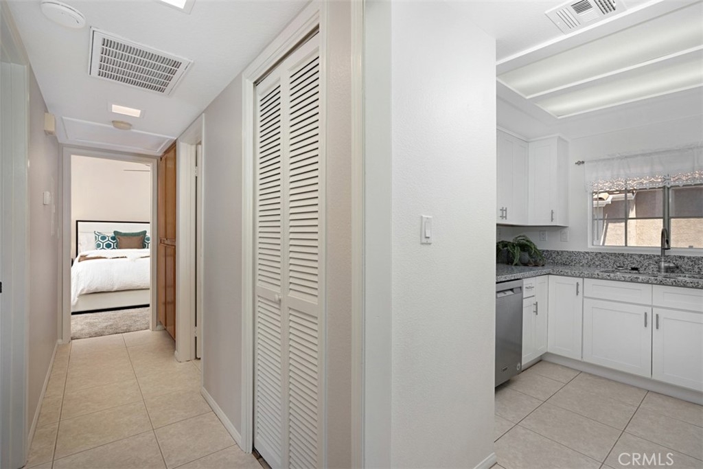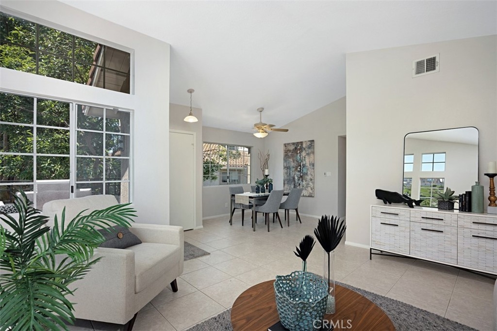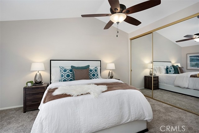 Darling Carriage Unit above the garages. No one above or below. Great location. End unit with deck for BBQ’s at entry, plus private deck off Primary Bedroom. Spacious living room with vaulted ceilings. Upgraded flooring and paint throughout. New carpet in bedrooms. Large primary bedroom with private bath. Nice sized secondary bedroom off hallway. Both bedrooms have spacious closets. Dining area. Sunny kitchen with newer appliances, remodeled cabinets and Granite counter tops. Condo was repiped by HOA a few years ago. Association pool and spa. Private park with baseball fields and tennis. Private gated community. Newer stack washer and dryer in hall closet. One-car garage directly below unit. Hiking and biking trails nearby.