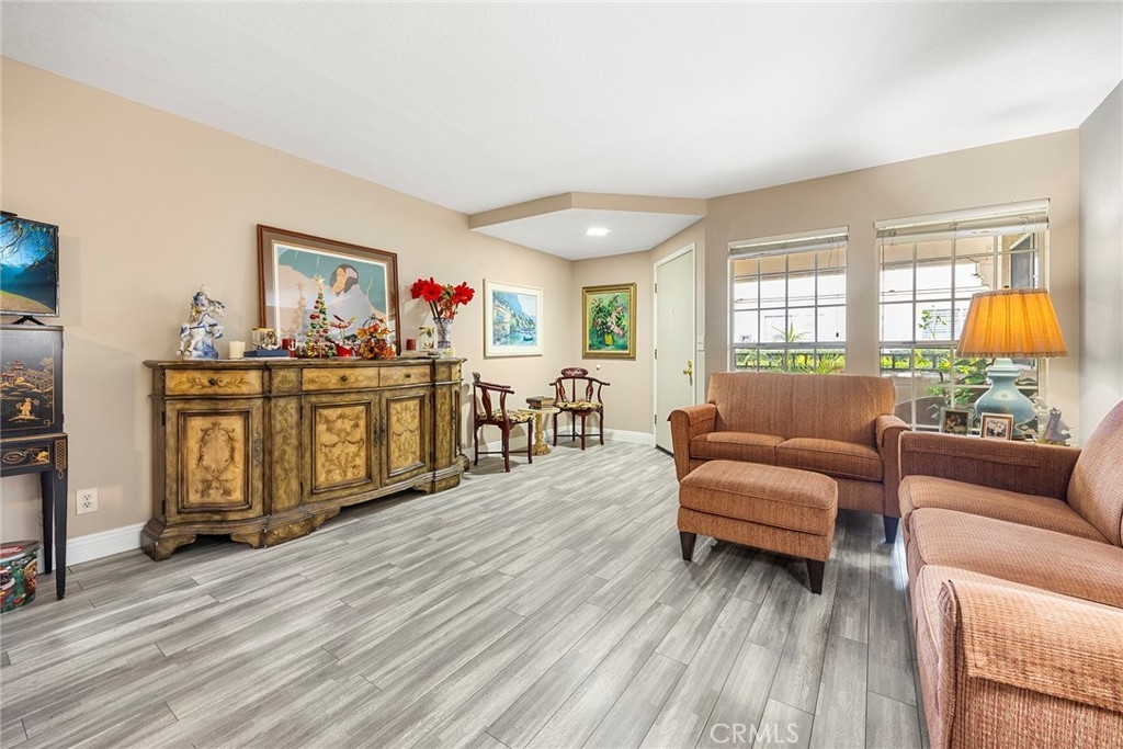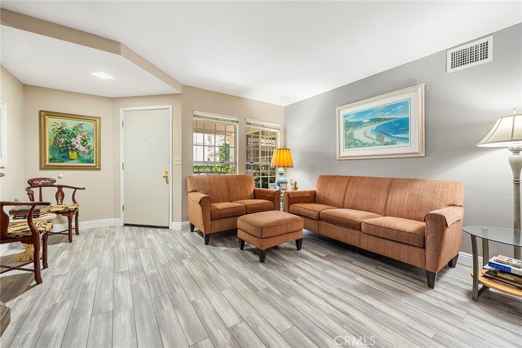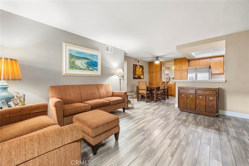 Welcome to the private gated community of Village Niguel Terrace in the beautiful city of Laguna Niguel. This ground-floor, single-level condominium on Ryan Drive offers the perfect blend of comfort, convenience, and luxury living. As you enter, you're greeted by an inviting open-concept layout seamlessly integrating the living room, dining area, and kitchen, all boasting upgraded wood laminate flooring. The kitchen features ample counterspace, stainless steel appliances, and a breakfast bar, ideal for serving or casual dining. The spacious bedroom provides a tranquil retreat with a view of the front porch and includes two closets—a walk-in closet and a separate mirrored closet—for ample storage. The bathroom offers generous space, complete with a tub and shower, and an additional closet for extra storage convenience. A stacked laundry unit discreetly tucked away in the hallway adds practicality to the residence. This property also includes a one-car detached enclosed garage for secure parking and storage needs. Outside, residents can indulge in resort-style amenities, including a sparkling pool and rejuvenating spa, creating the perfect setting for leisure and entertainment. With its prime location near shopping, dining, and outdoor recreational opportunities, this condo presents an ideal opportunity to embrace the vibrant Southern California lifestyle. Whether you're seeking a primary residence or an investment property, this condo offers the epitome of luxurious living in Laguna Niguel.