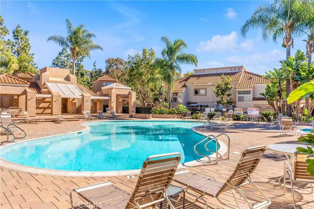 HUGE PRICE IMPROVEMENT! Secure this GREAT property before it's too late! If you’re looking for a beautiful penthouse condo in a private gated community offering resort-like amenities? Then this is the gem you have been looking for! Entering the home, you are greeted by an open floor plan with large windows and lots of natural light, along with vaulted and scraped ceilings, recessed lighting and dark laminate floors throughout most of the condo. Open to the living area, the kitchen features granite countertops with plenty of cabinets, a breakfast bar and new stainless-steel appliances. Near the front entry is a nicely sized guest bedroom/office space with double doors and a large closet with mirrored doors. Down the hall from the kitchen sits the spacious master suite with vaulted ceilings, plantation shutters, and a large closet with mirrored doors. The hallway bath just outside the master suite has a vanity area with granite counters, tile floors and a shower/tub. Enjoy the convenience of the stackable washer/dryer just outside the master suite and central AC and heat. Additionally, this unit has a 1 car detached garage and plenty of guest parking. Enjoy the warm sunshine and light breezes with friends and family on the extra large front patio, perfect for BBQ’s/entertaining and relaxing. Enjoy resort-like amenities that include a pool and spa, tennis courts, and parks. Short distance to local grocery stores, restaurants and entertainment, hiking/biking trails and local beaches. Serviced by the award winning Capistrano Unified school district! Easy Access to Freeways & Toll Roads.